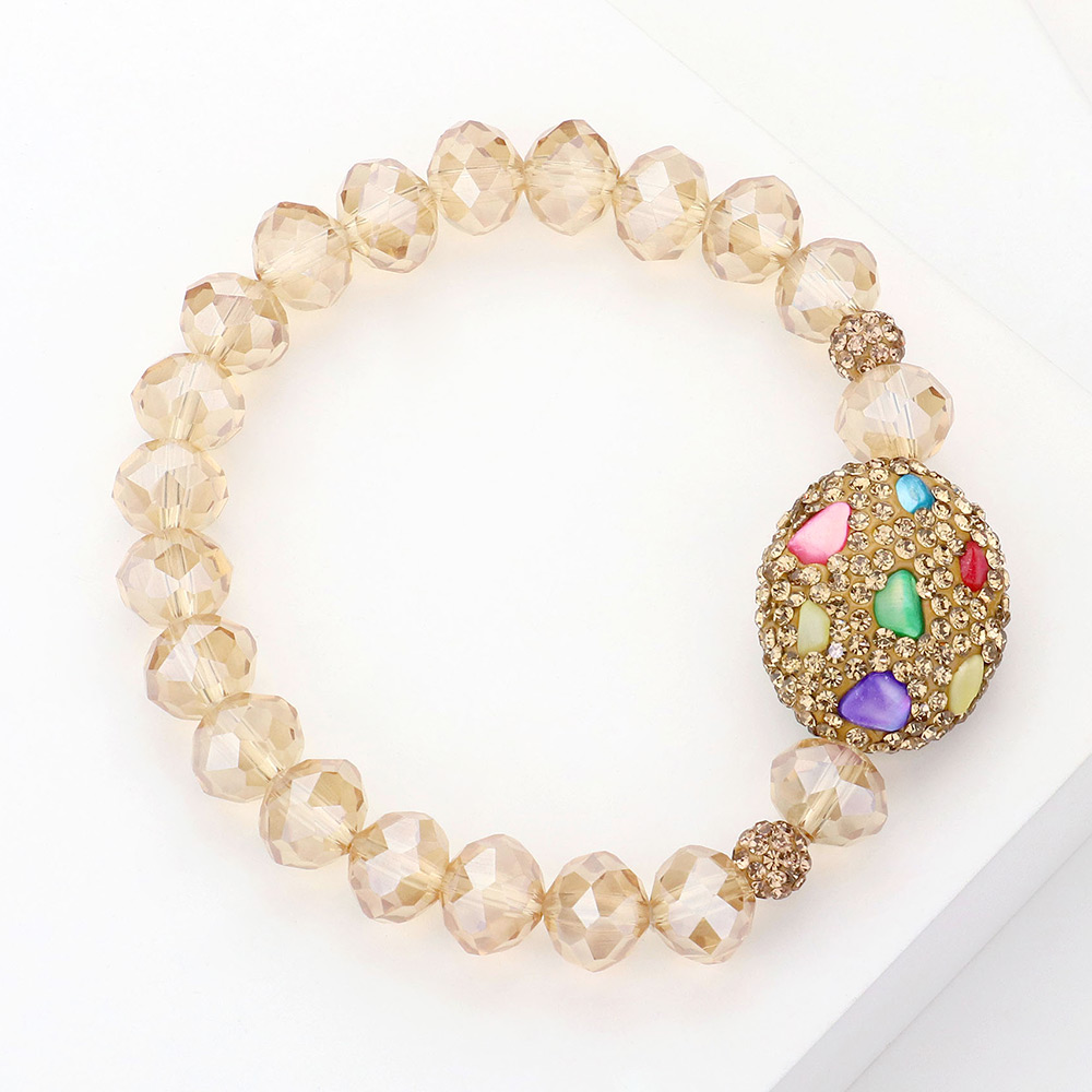 Oval Shamballa Ball Accented Natural Stone Bracelet