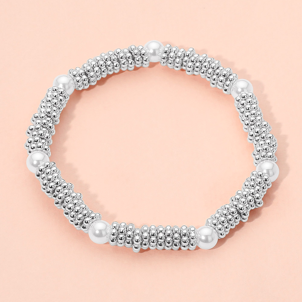 Pearl Accent Textured Metal Beaded Stretch Bracelet