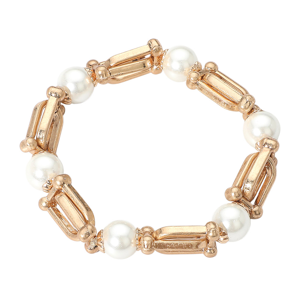 Details • Size : 0.4" H, 2.2" D • Stretchable • Refined and timeless, this pearl and geometric link stretch bracelet adds a modern touch to any outfit. Designed for effortless wear and lasting comfort, it’s the perfect accessory to elevate casual looks or complement elegant ensembles with understated sophistication. • Lead and Nickel Compliant