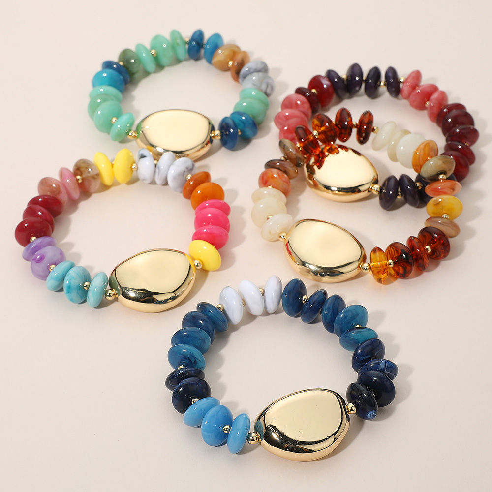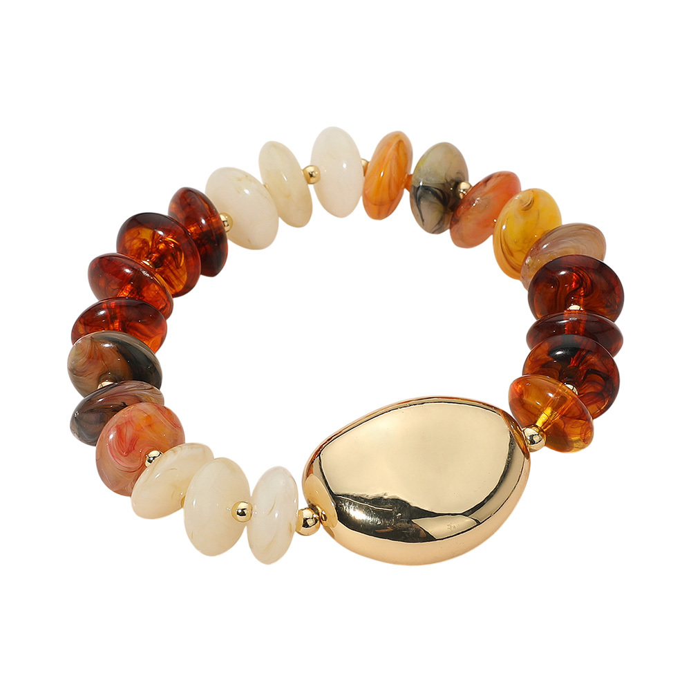 Polished Metal Accent Resin Pebble Beaded Stretch Bracelet