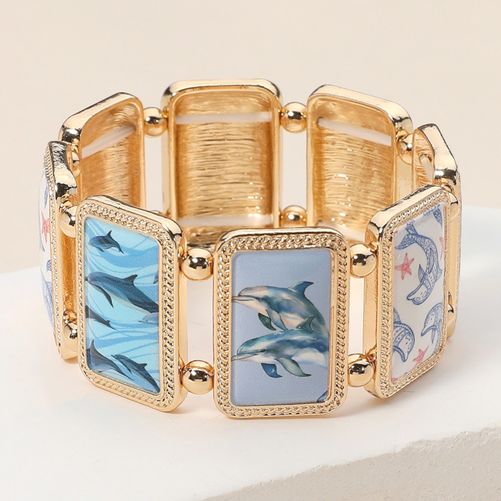 Rectangular Dolphin Epoxy Cluster Link Stretch Bracelet