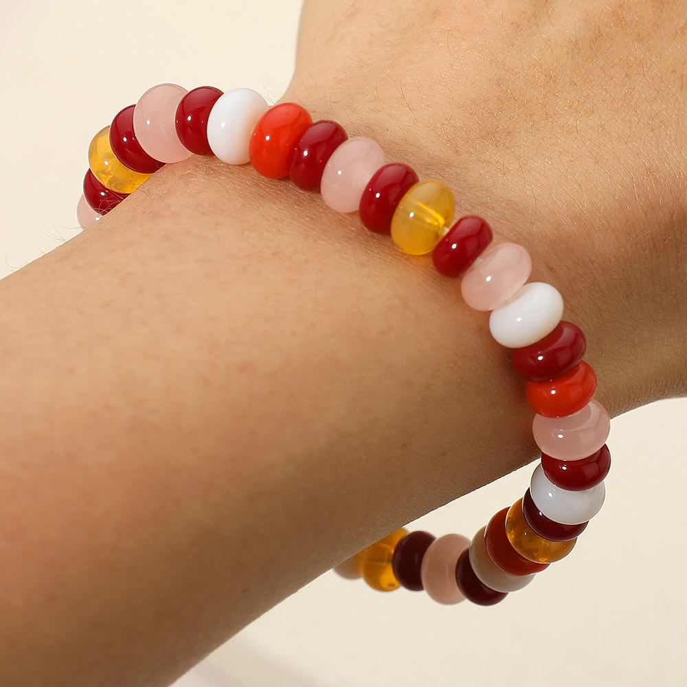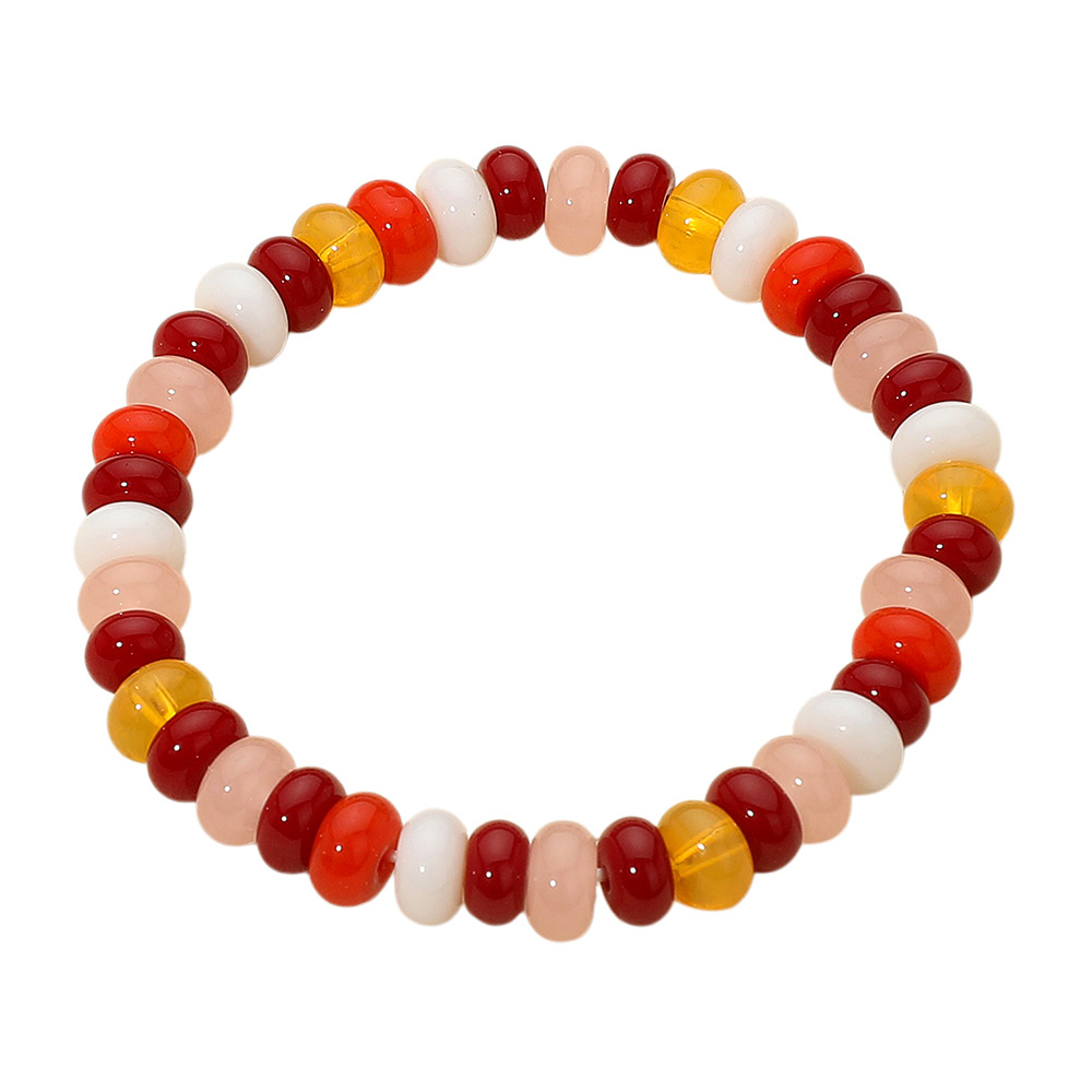 Details • Size : 0.3" H • Stretchable • Brighten up your look with this multicolor stretch bracelet featuring red, pink, white, and amber-toned beads. Lightweight, versatile, and easy to wear, it adds a playful pop of color to casual outfits or makes a fun stacking piece. • Lead and Nickel Compliant