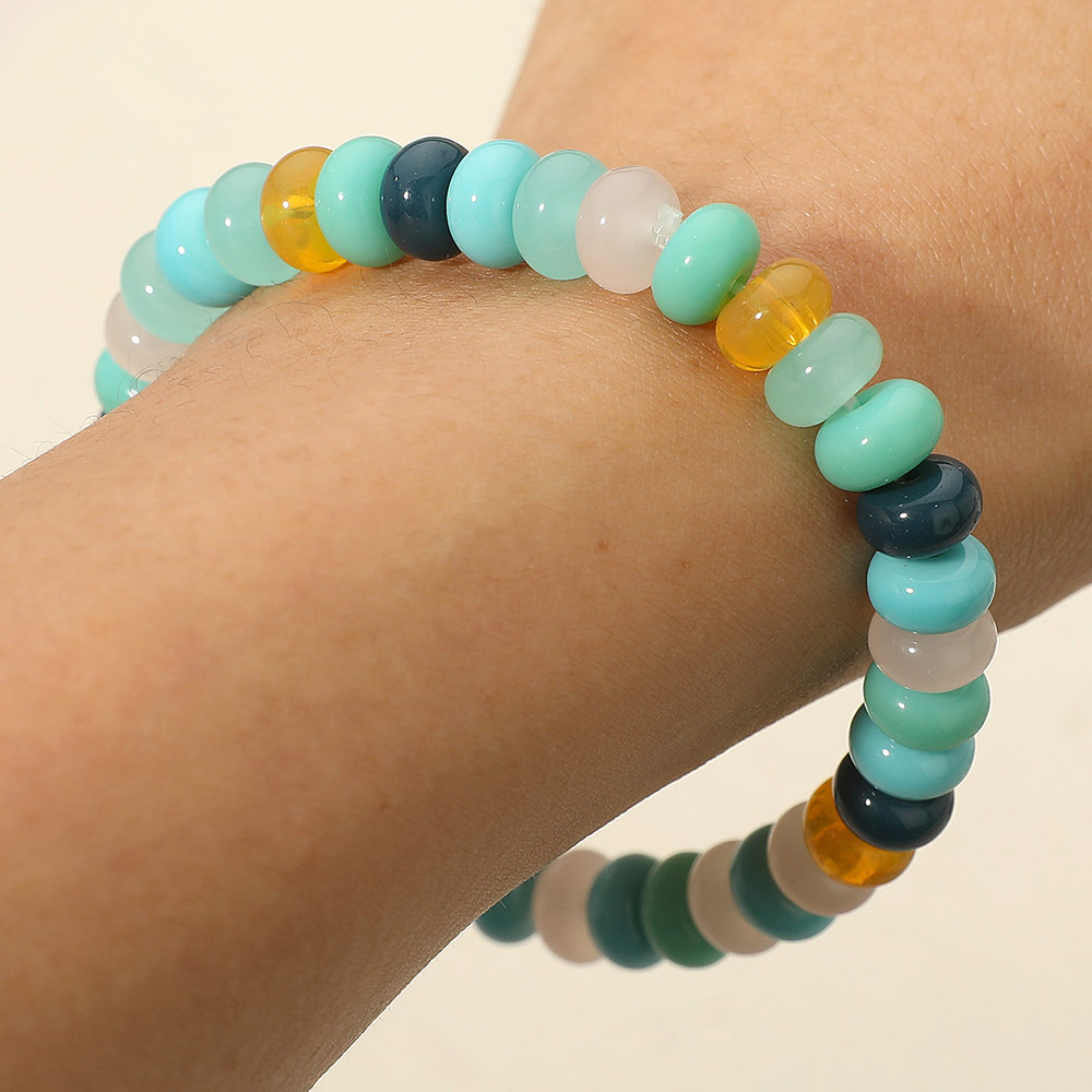 Details • Size : 0.3" H • Stretchable • Brighten up your look with this multicolor stretch bracelet featuring red, pink, white, and amber-toned beads. Lightweight, versatile, and easy to wear, it adds a playful pop of color to casual outfits or makes a fun stacking piece. • Lead and Nickel Compliant