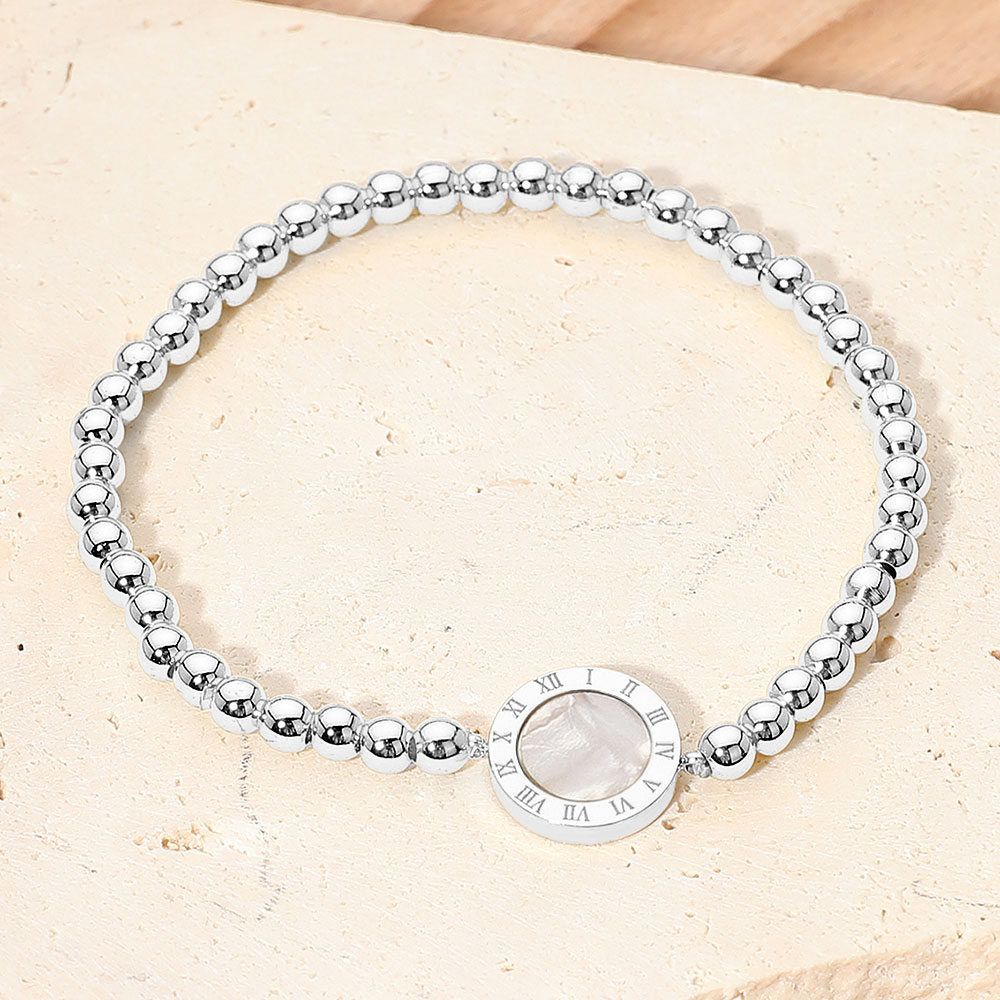 Details • Size : 0.5" H • Stretchable • This elegant gold beaded bracelet features a chic disc charm with Roman numerals, offering a unique twist to your accessories collection. A perfect fusion of timeless sophistication and modern style, this bracelet adds a touch of class to any outfit, making it ideal for both casual and formal occasions. • Stainless Steel