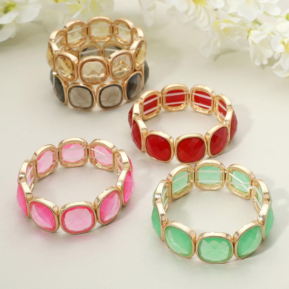 • Elegant stretch bracelet featuring faceted gemstone-style accents set in a gold-tone frame. Adds a bold yet refined touch to any look. Comfortable fit with elastic design, ideal for daily wear or special events.