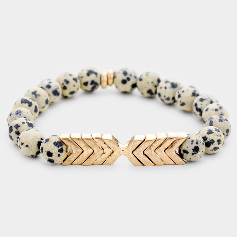 Semi Precious Ball Beaded Chevron Stretch Bracelet