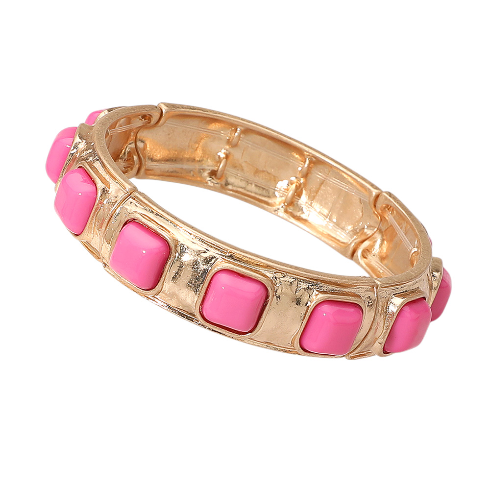 Square Bead Embellished Hammered Metal Stretch Bracelet