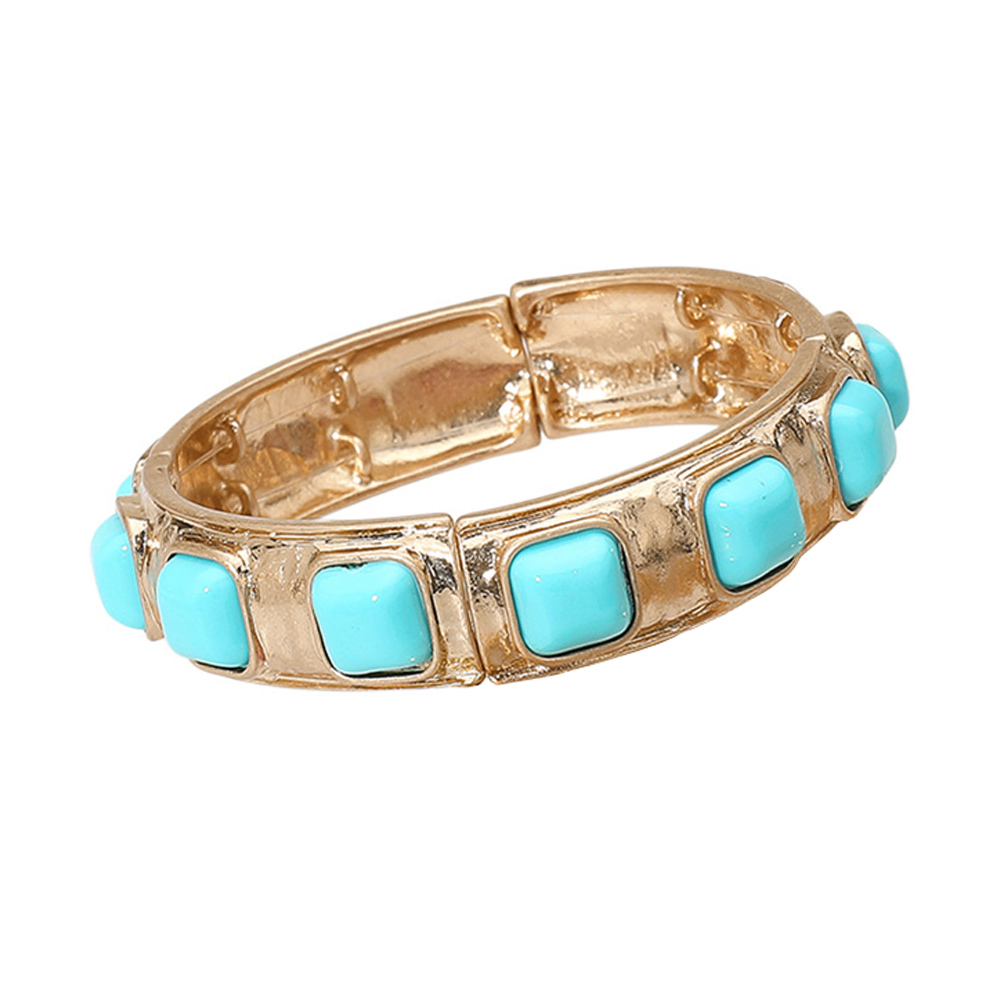 Square Bead Embellished Hammered Metal Stretch Bracelet