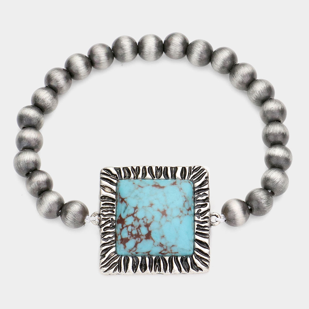 Square Natural Stone Accented Stretch Bracelet