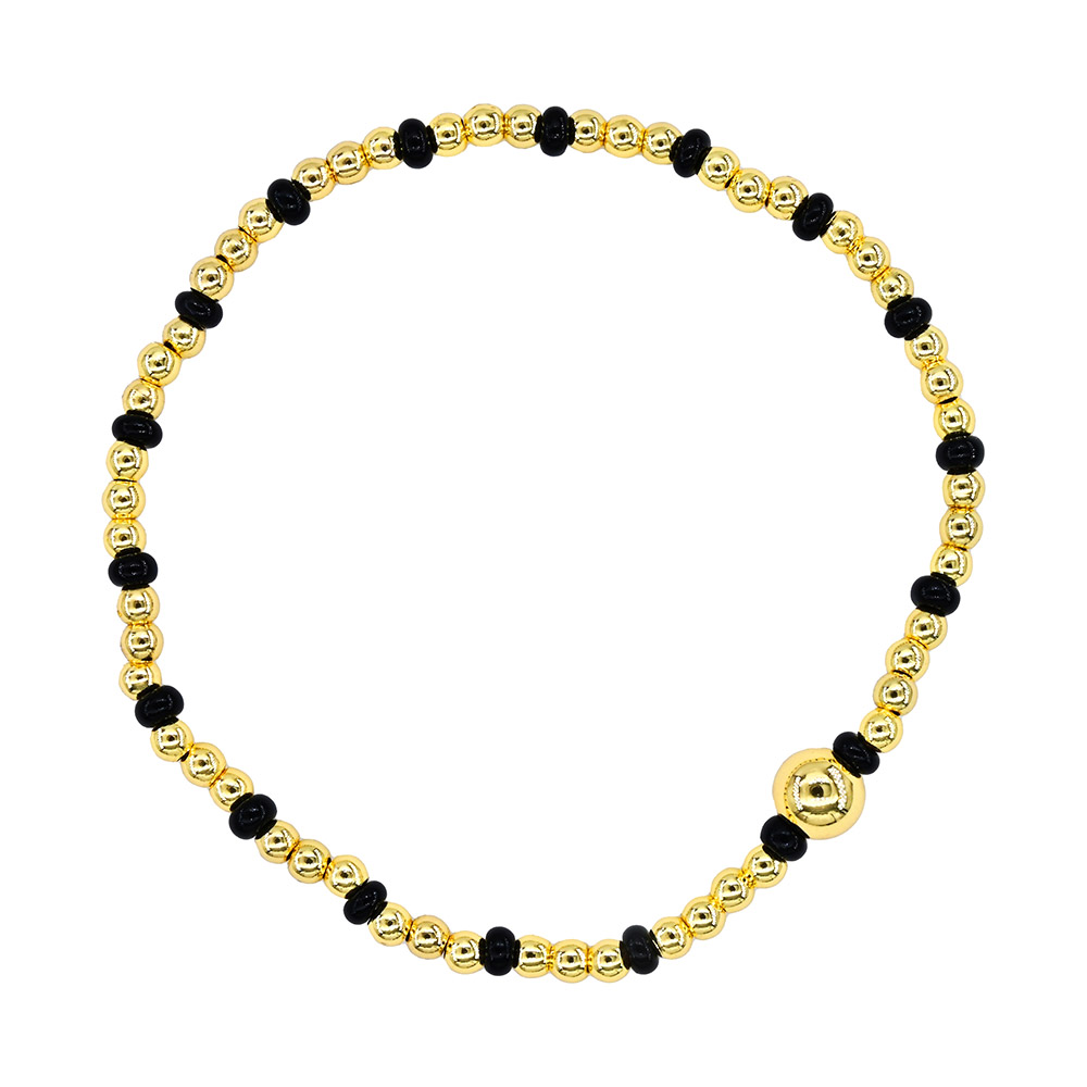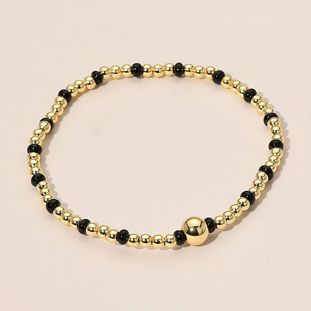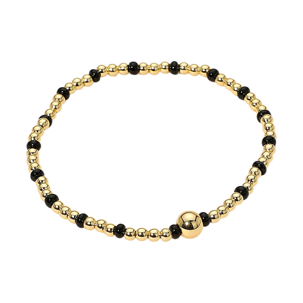 • Stylish stretch bracelet featuring alternating polished stainless steel beads with a standout central accent. Lightweight and versatile, perfect for stacking or wearing solo to complement everyday outfits and special looks.