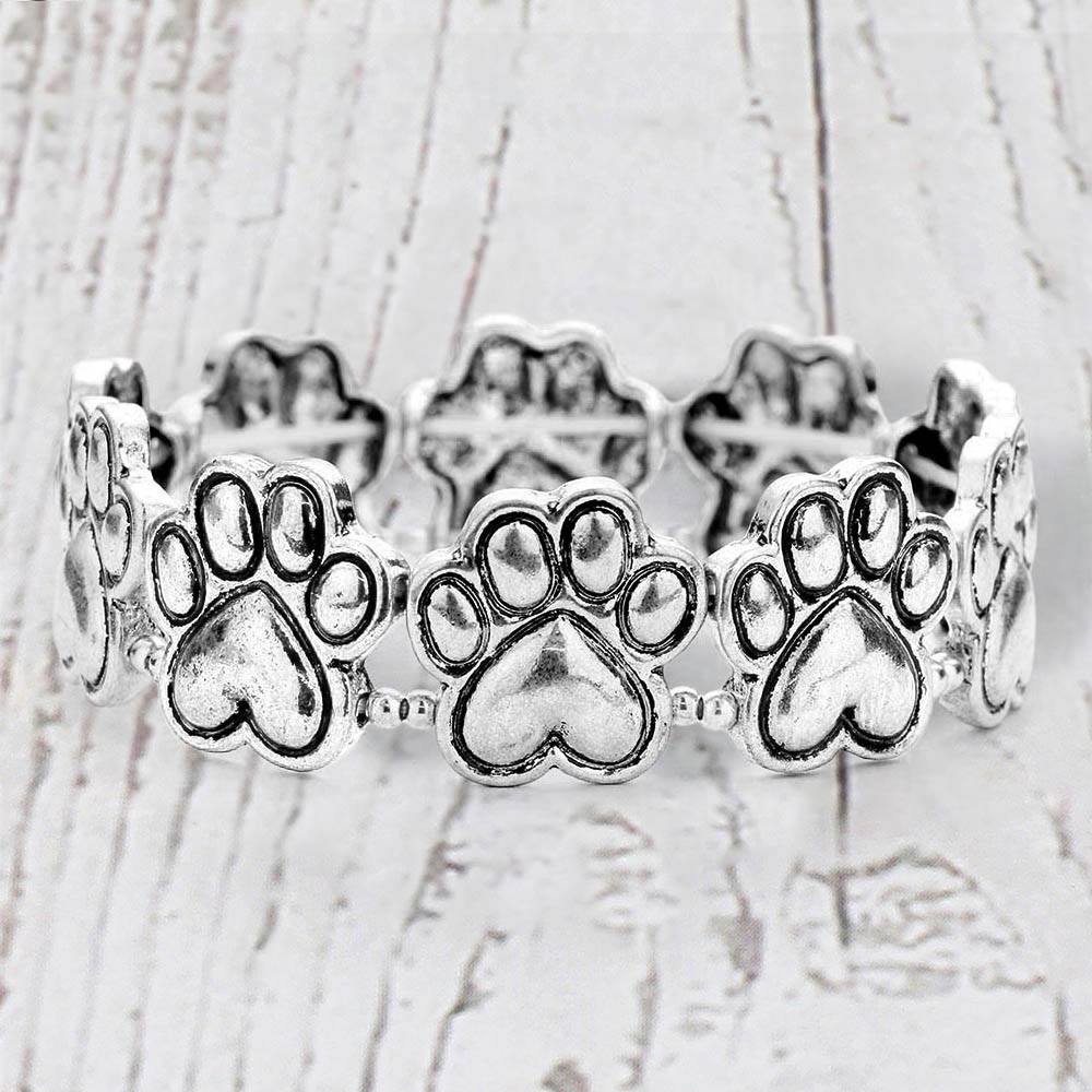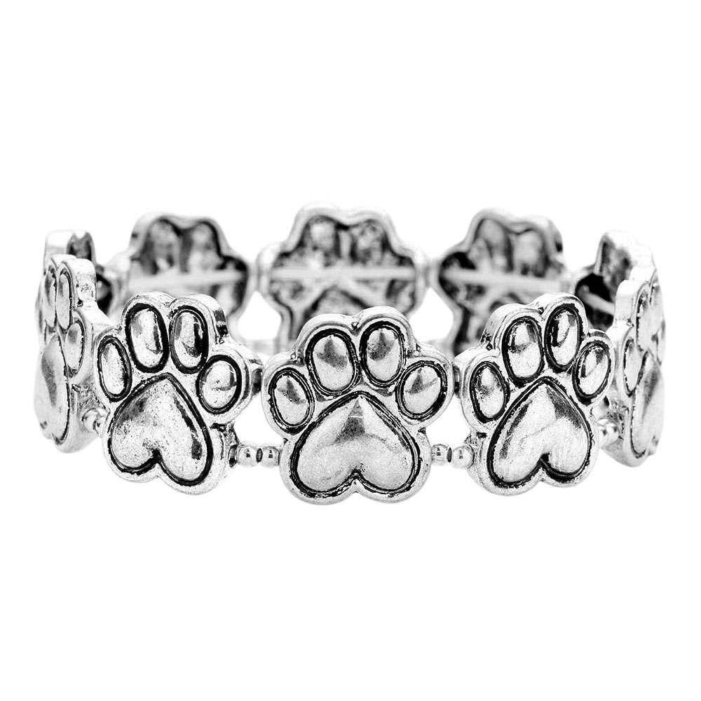 Details • Size : 0.75" H • Stretchable • Cute stretch bracelet featuring alternating paw and heart motifs, designed for pet lovers who want to wear their love proudly. A charming and meaningful accessory that adds personality to any outfit, perfect for gifting or everyday wear. • Lead and Nickel Compliant