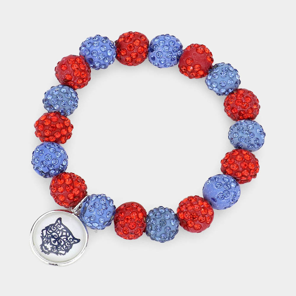 Tiger Accented Round Charm Shamballa Ball Stretch Bracelet