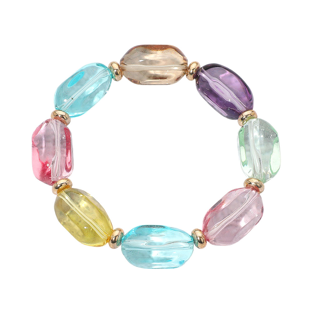 Transparent Faceted Pebble Beaded Stretch Bracelet Transparent Faceted Pebble Beaded Stretch Bracelet