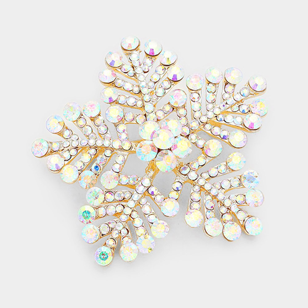 Details • Size : 2.5" X 2.5" • Pin Brooch • Elegant crystal snowflake rhinestone brooch pin featuring a layered icy design with shimmering stones. A perfect accessory to add winter sparkle to coats, scarves, holiday outfits, or seasonal events. • Lead and Nickel Compliant