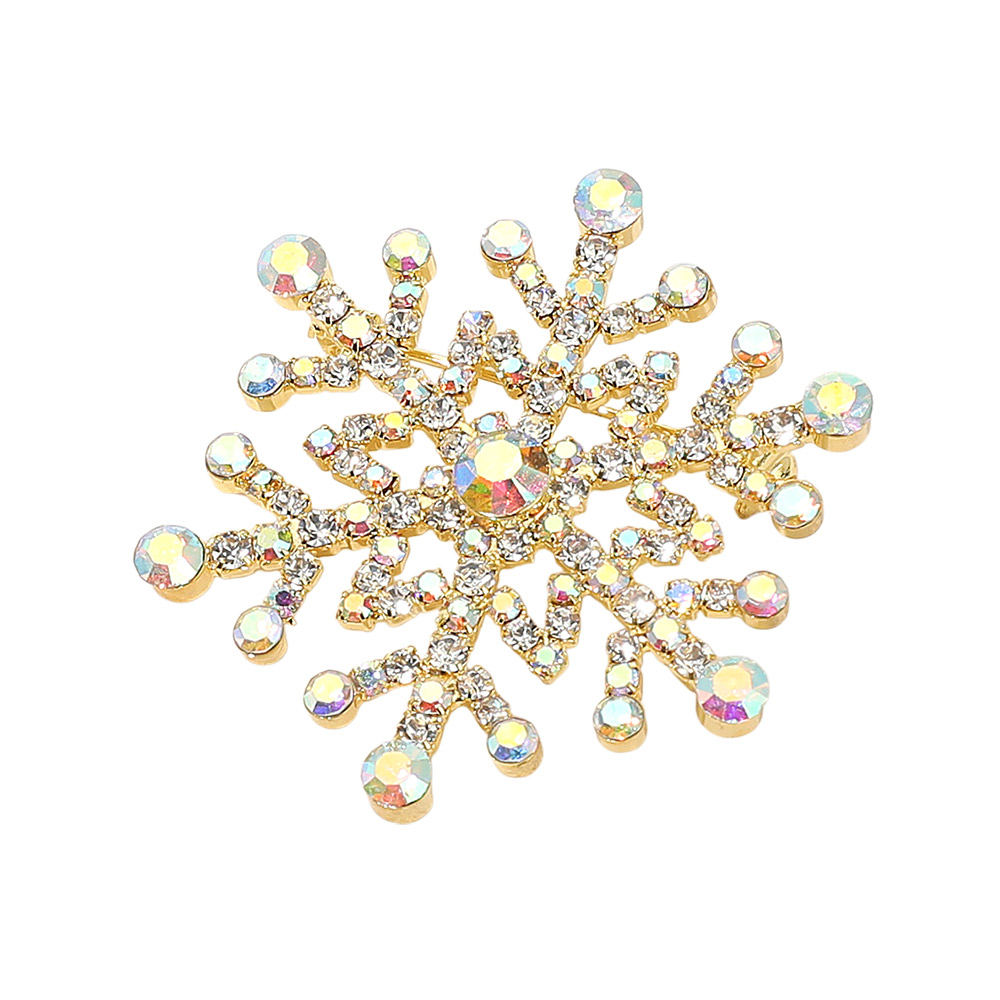 • Elegant snowflake brooch pin adorned with sparkling rhinestones in a dazzling winter design. Perfect accessory for coats, scarves, and holiday outfits, adding festive sparkle and seasonal charm to any look.