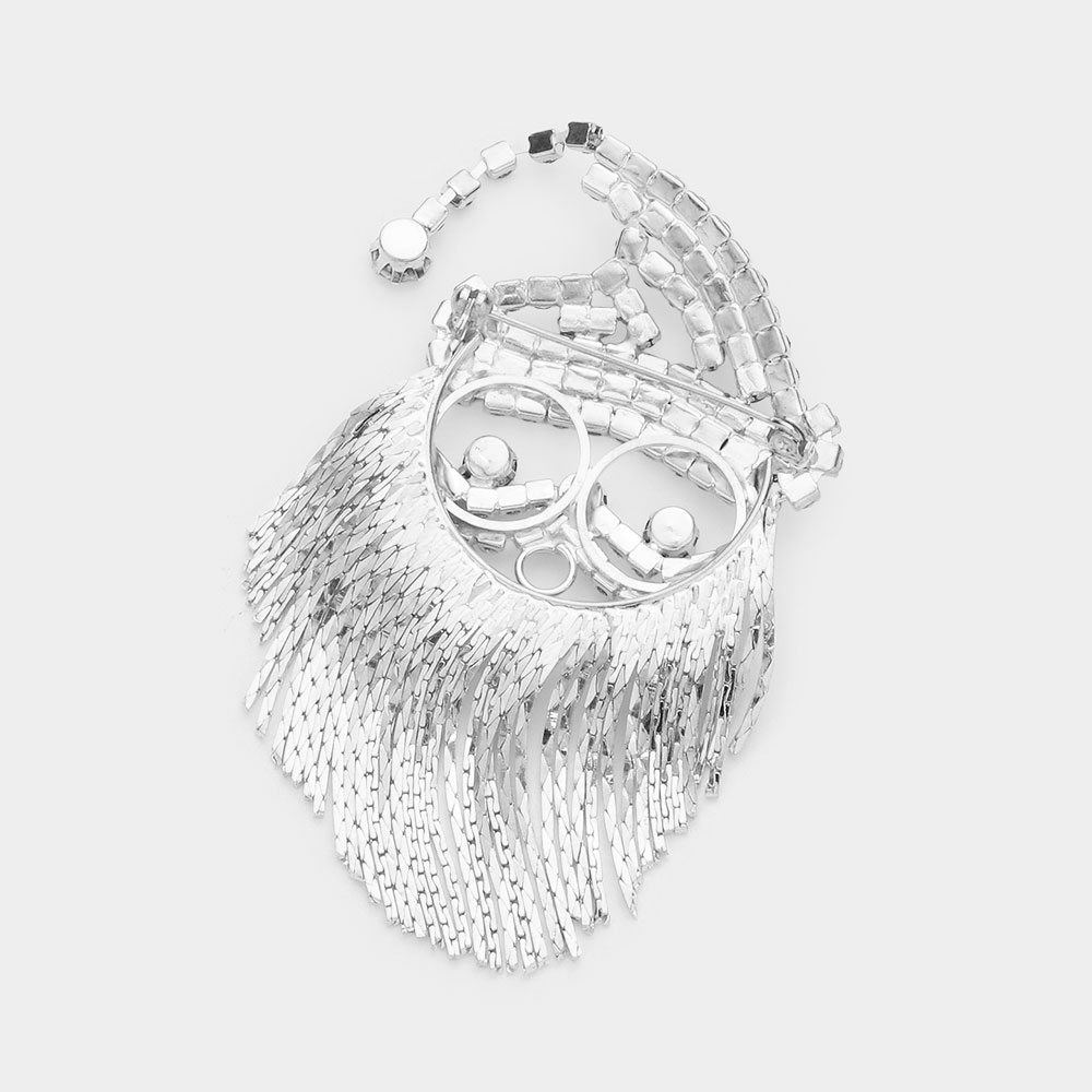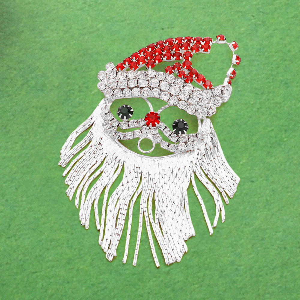 Details • Size : 2" X 3.25" • Pin Brooch • Bring festive sparkle to your outfit with this radiant Santa brooch adorned with dazzling rhinestones and a playful fringe beard. Perfect for holiday gatherings, parties, or gifting, this charming accessory adds joyful cheer and timeless sparkle to any winter look. • Lead and Nickel Compliant