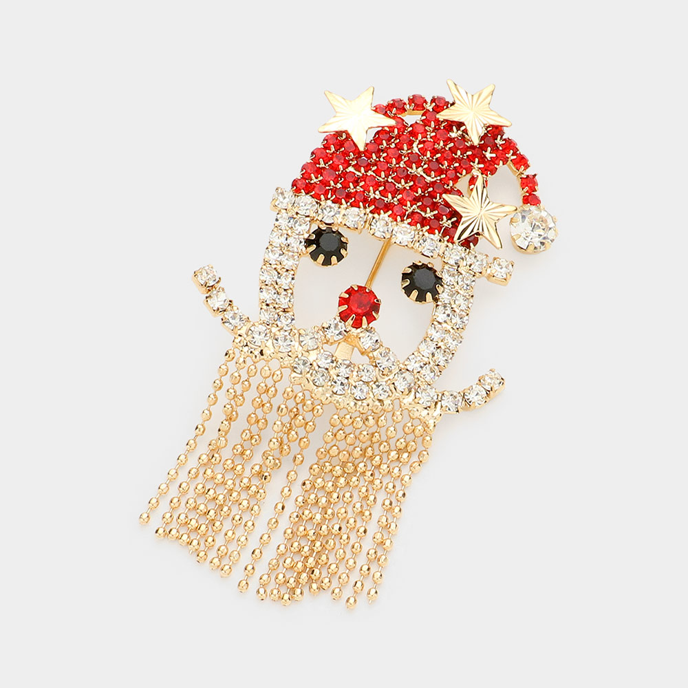 Crystal Santa Claus Fringe Beard Pin Brooch