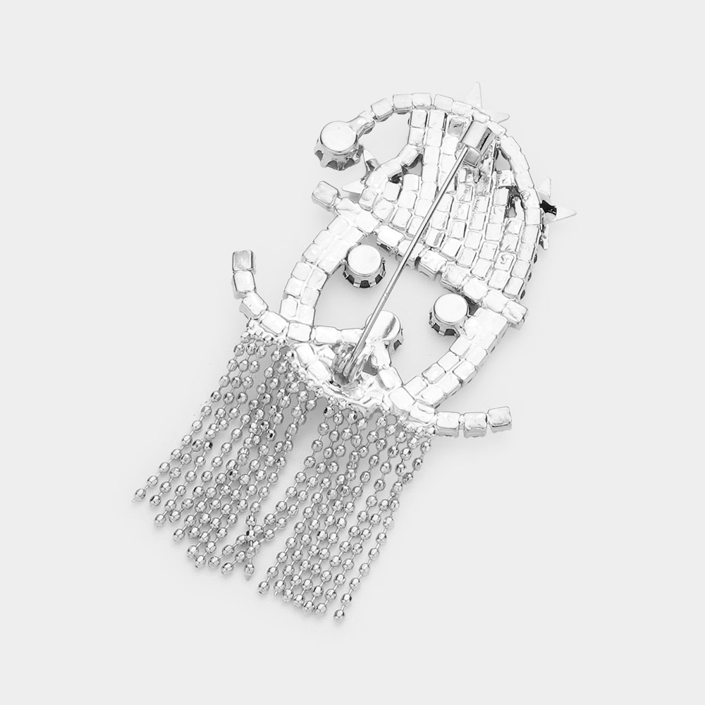 Crystal Santa Claus Fringe Beard Pin Brooch