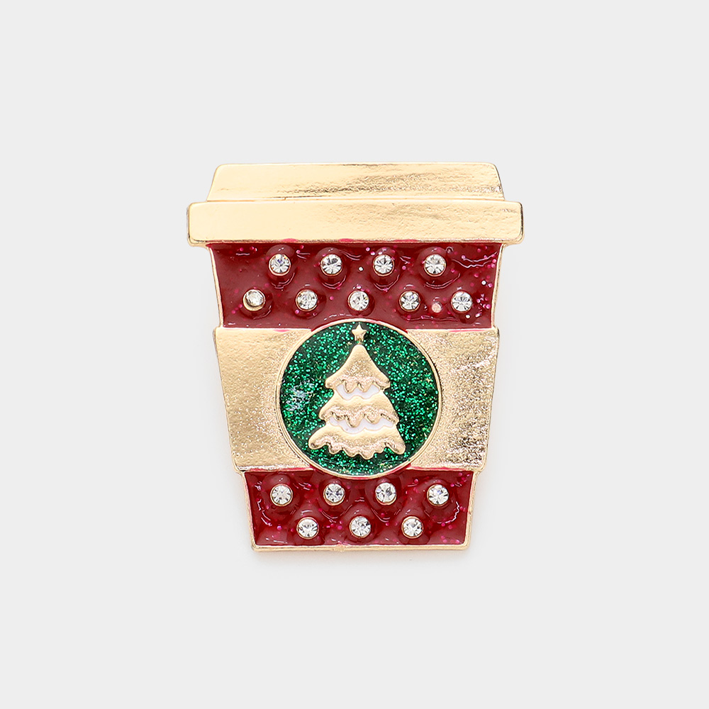 Enamel Christmas Tree Pointed Latte Pin Brooch