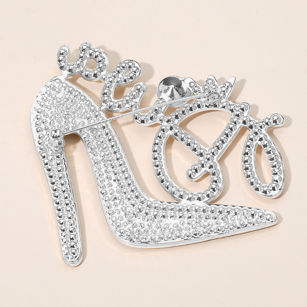 Diva Message Glamorous High Heel Crystal Rhinestone Pin Brooch