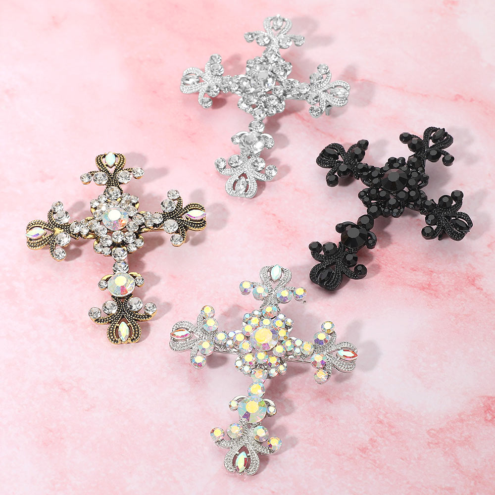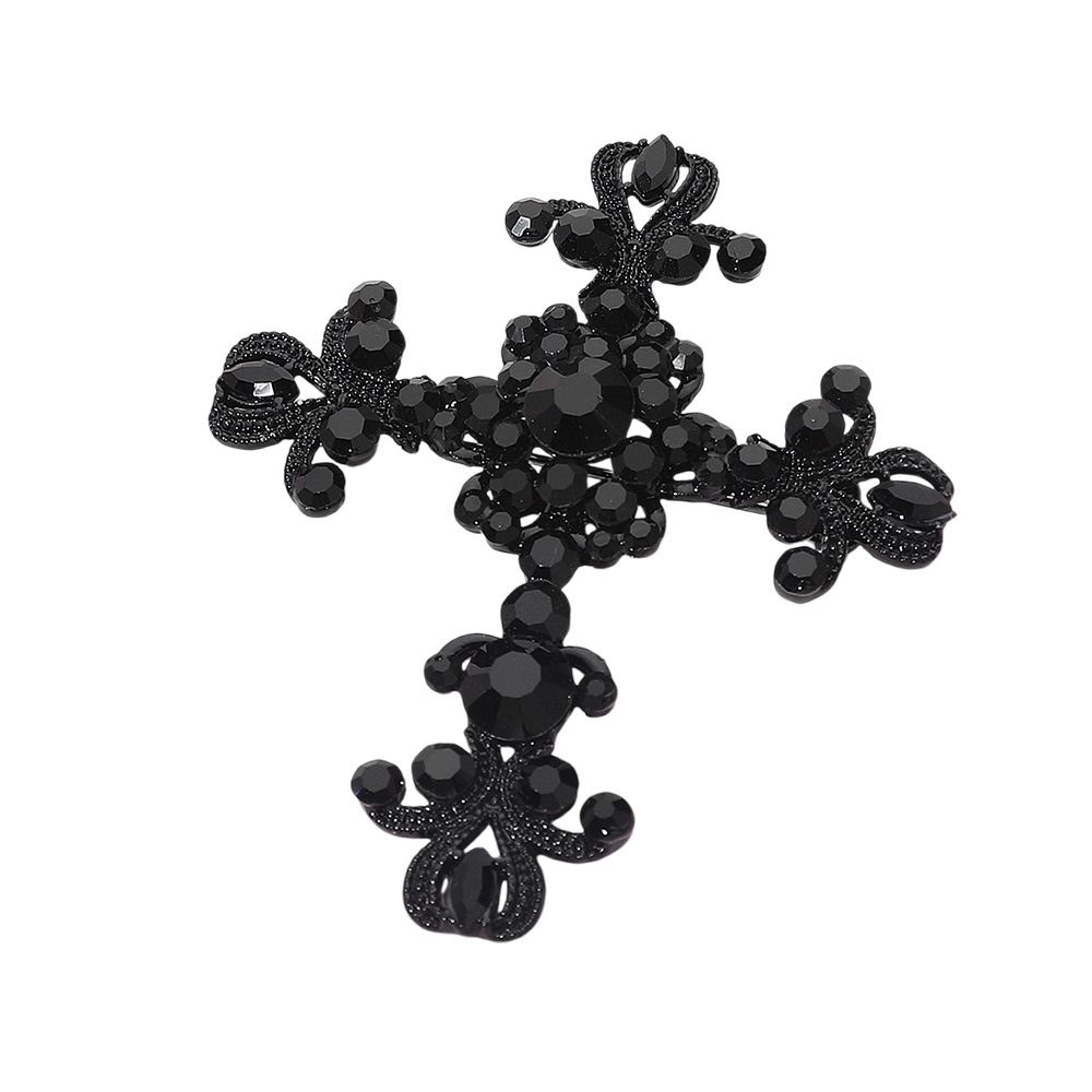 Details • Size : 2.25" X 2.75" • Pin Brooch • Showcase timeless elegance with this crystal cross brooch, beautifully detailed with shimmering stones for a radiant finish. Perfect for religious events, weddings, or as a statement accessory on jackets, scarves, or bags, this cross pin makes a meaningful keepsake or thoughtful gift for loved ones. • Lead and Nickel Compliant