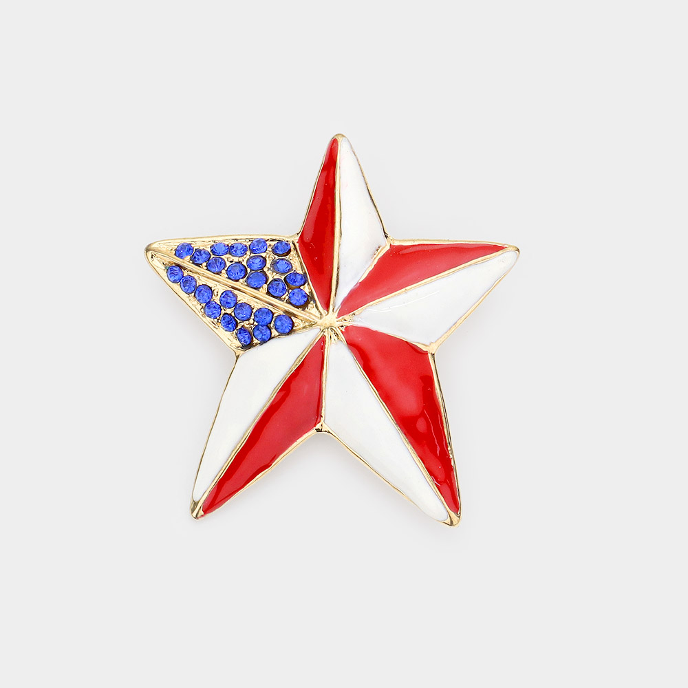 American USA Flag Shamballa Ball Accented Faceted Bead Long Necklace