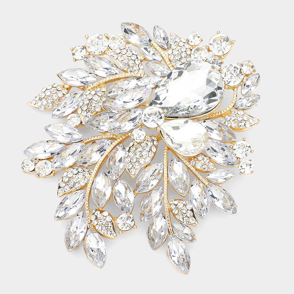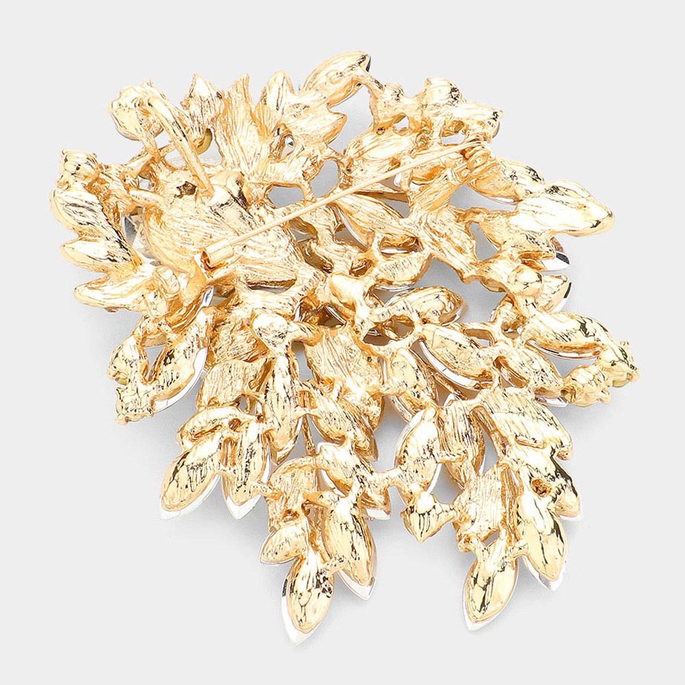 Crystal Stone Paved Flower Pin Brooch