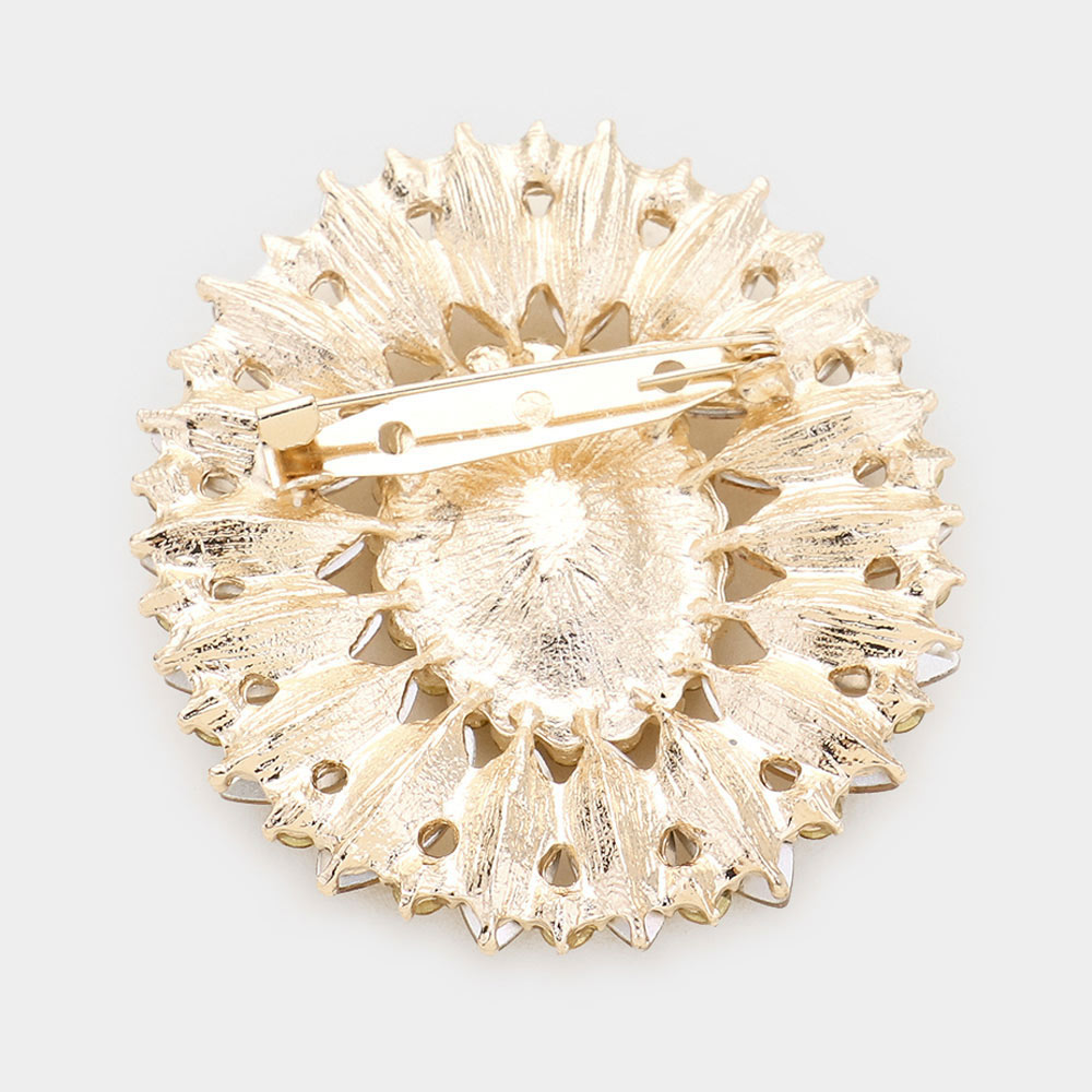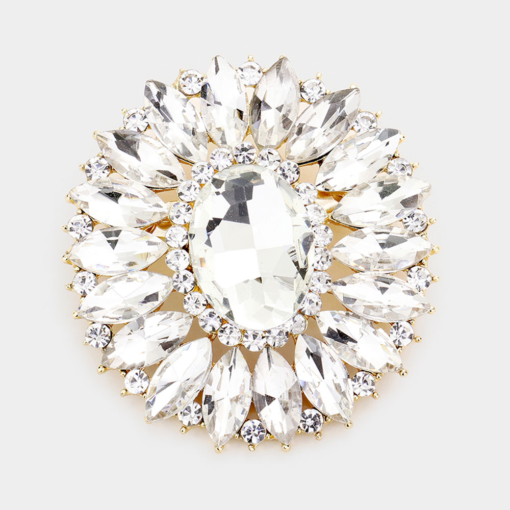 Flower Centered Marquise Stone Cluster Vine Pin Brooch