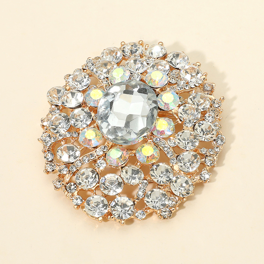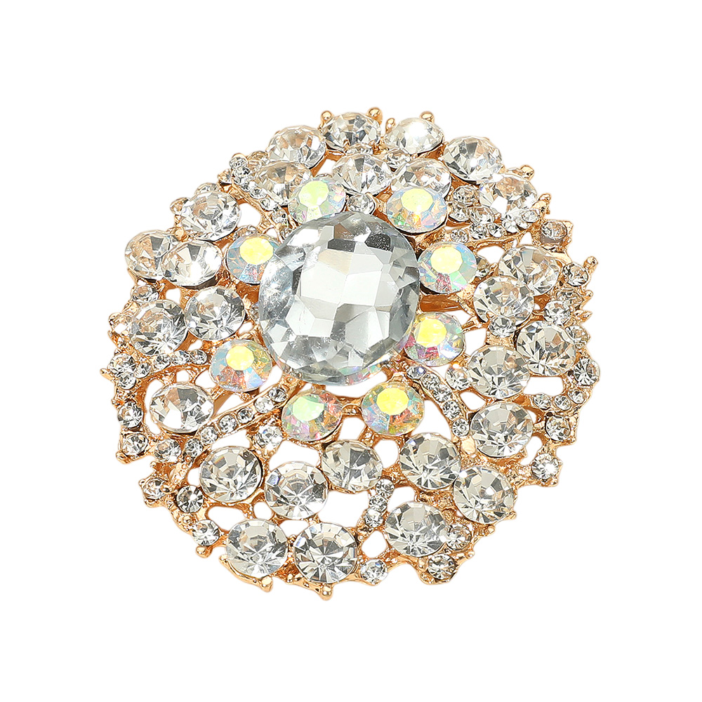 Details • Size : 2.6" X 3" • Pin Brooch • Add sparkle to your outfits with this round crystal brooch featuring a large center gemstone surrounded by shimmering accents. Perfect for weddings, parties, or evening wear, this elegant brooch is a versatile accessory that enhances jackets, scarves, or dresses with timeless glamour.