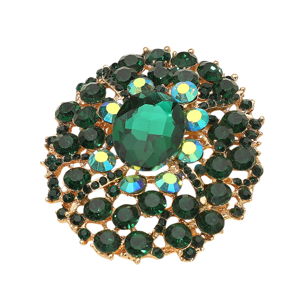 • Add sparkle to your outfits with this round crystal brooch featuring a large center gemstone surrounded by shimmering accents. Perfect for weddings, parties, or evening wear, this elegant brooch is a versatile accessory that enhances jackets, scarves, or dresses with timeless glamour.