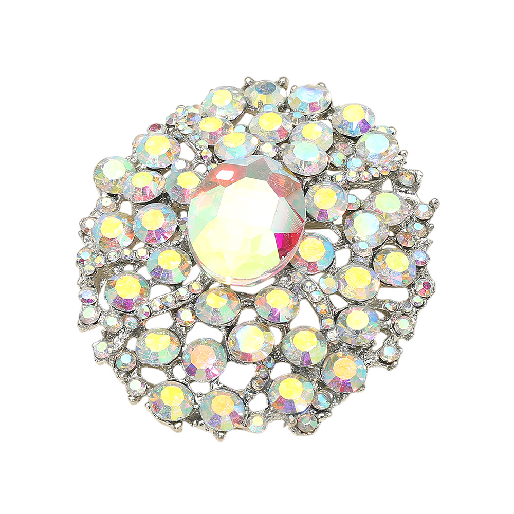 • Add sparkle to your outfits with this round crystal brooch featuring a large center gemstone surrounded by shimmering accents. Perfect for weddings, parties, or evening wear, this elegant brooch is a versatile accessory that enhances jackets, scarves, or dresses with timeless glamour.