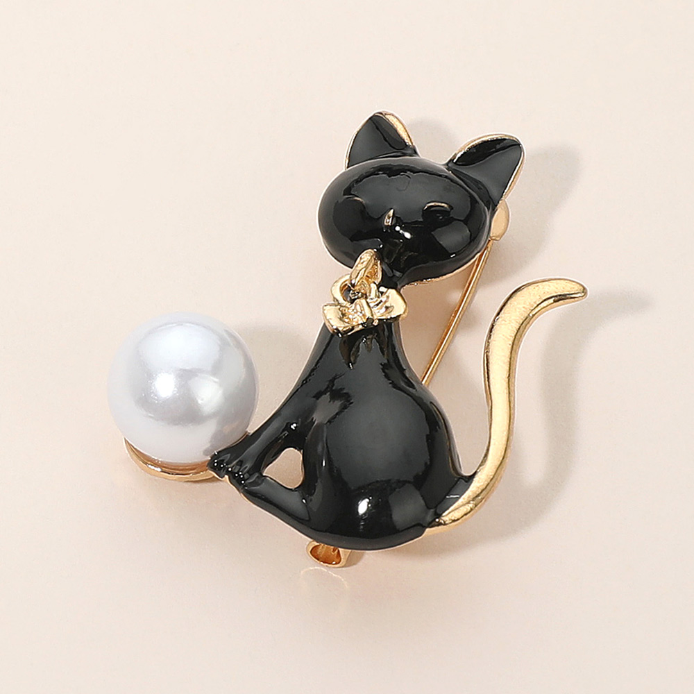 • Whimsical cat brooch featuring a glossy finish, delicate bow detail, and a luminous pearl accent. A charming accessory that adds personality and elegance to jackets, scarves, or bags for everyday wear or special occasions.