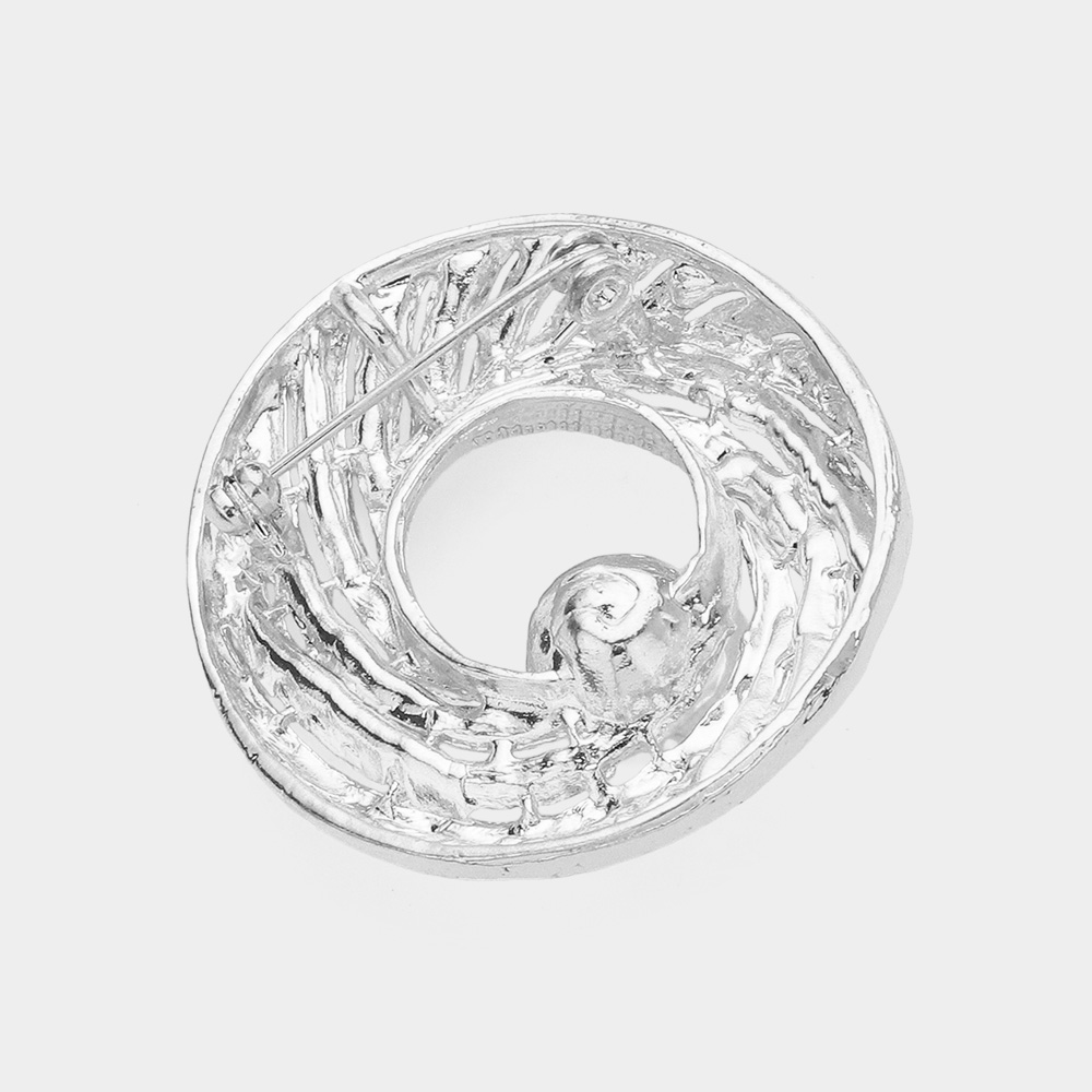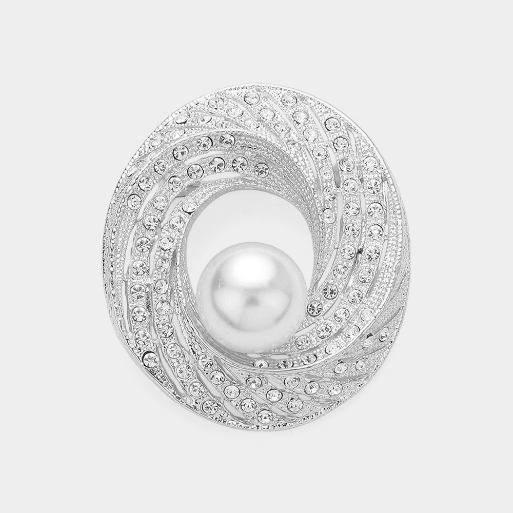 Pearl Pointed Stone Paved Open Swirl Pin Brooch