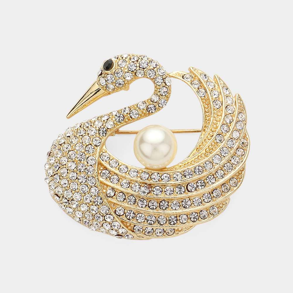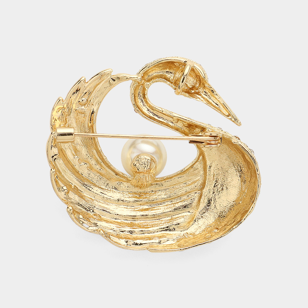Pearl Pointed Stone Paved Swan Pin Brooch