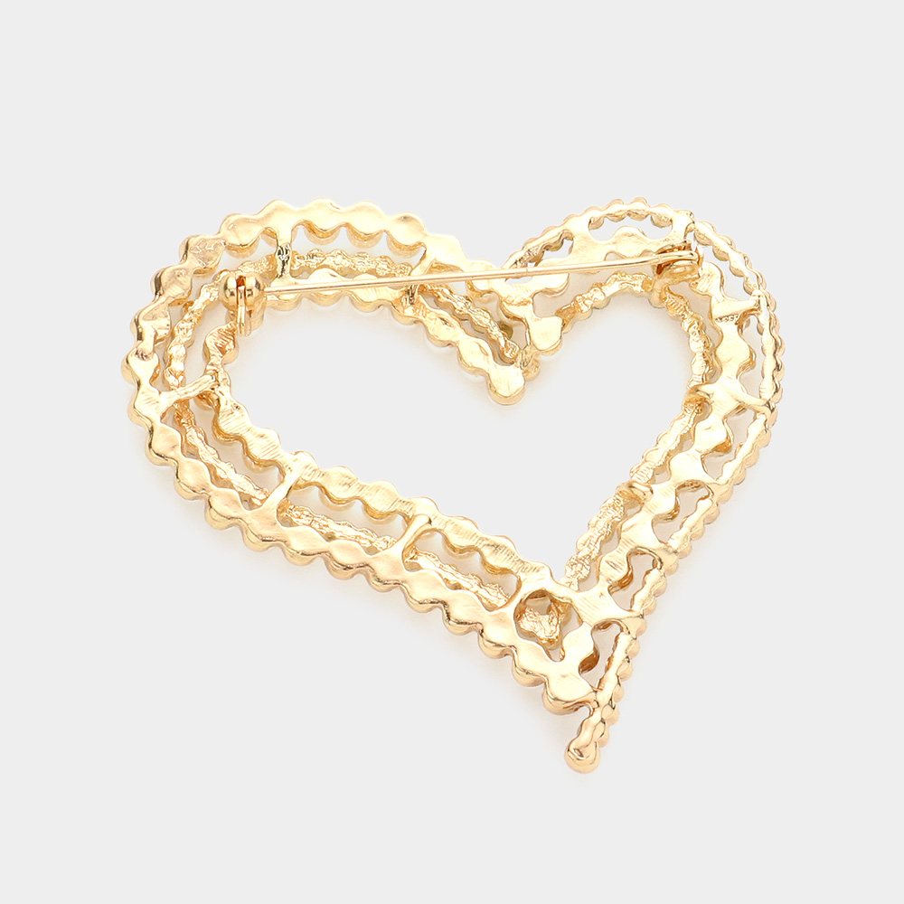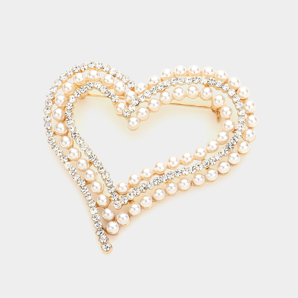 Pearl Rhinestone Embellished Open Heart Pin Brooch