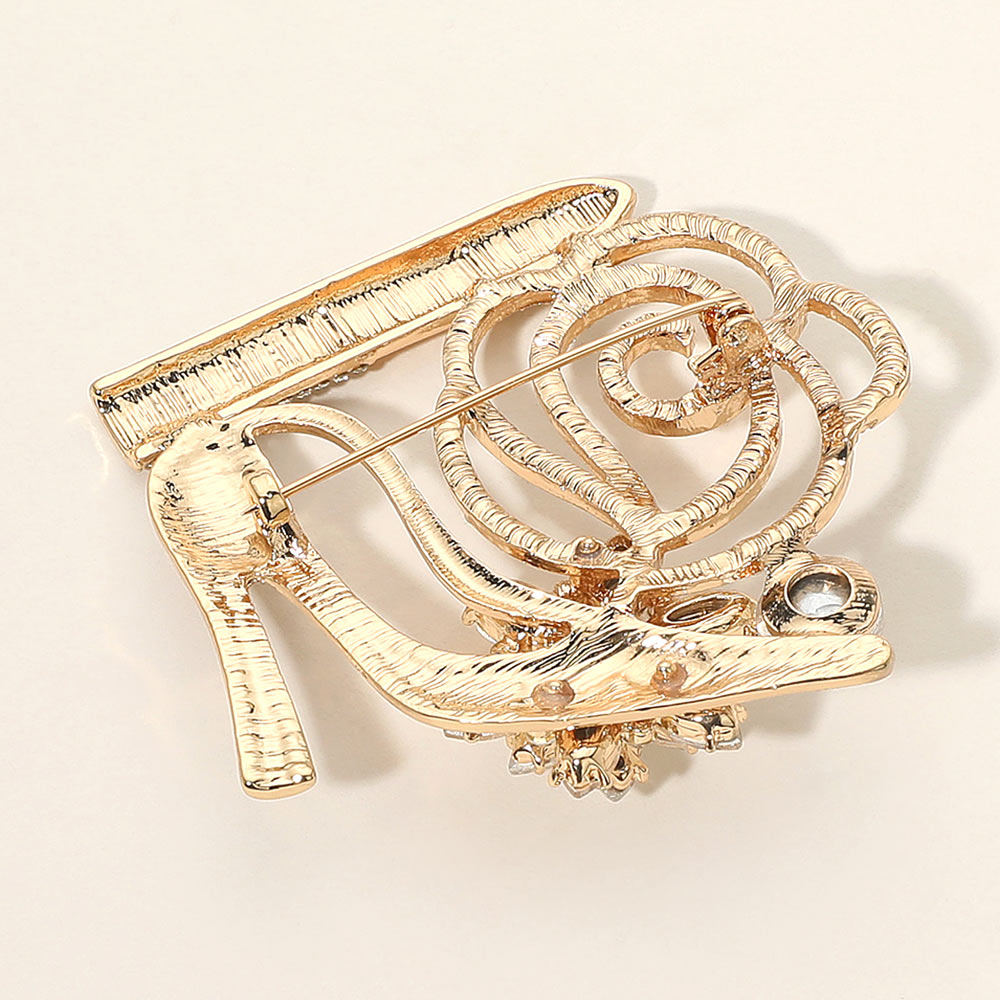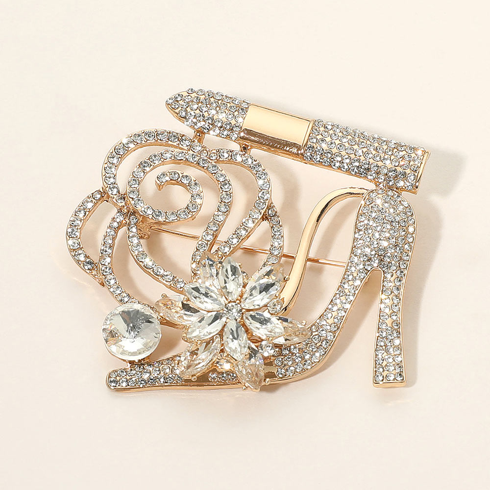 Rhinestone Embellished Flower Accent Glam High Heel Lipstick Pin Brooch