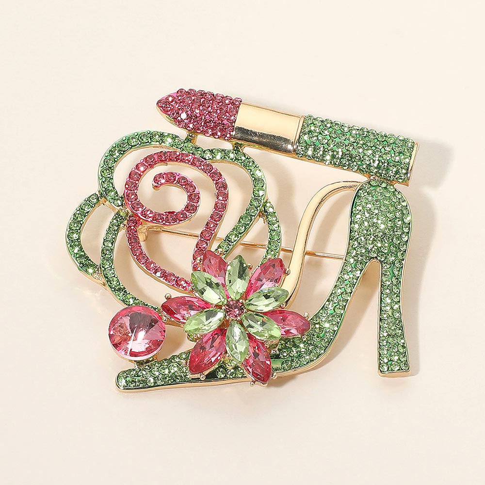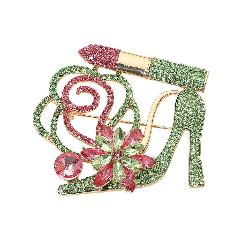 • Glamorous brooch featuring a high heel, lipstick, floral accents, and sparkling crystals. A bold statement accessory perfect for adding flair to jackets, scarves, or bags. Ideal for special occasions or gifting with a touch of fashion-forward fun.