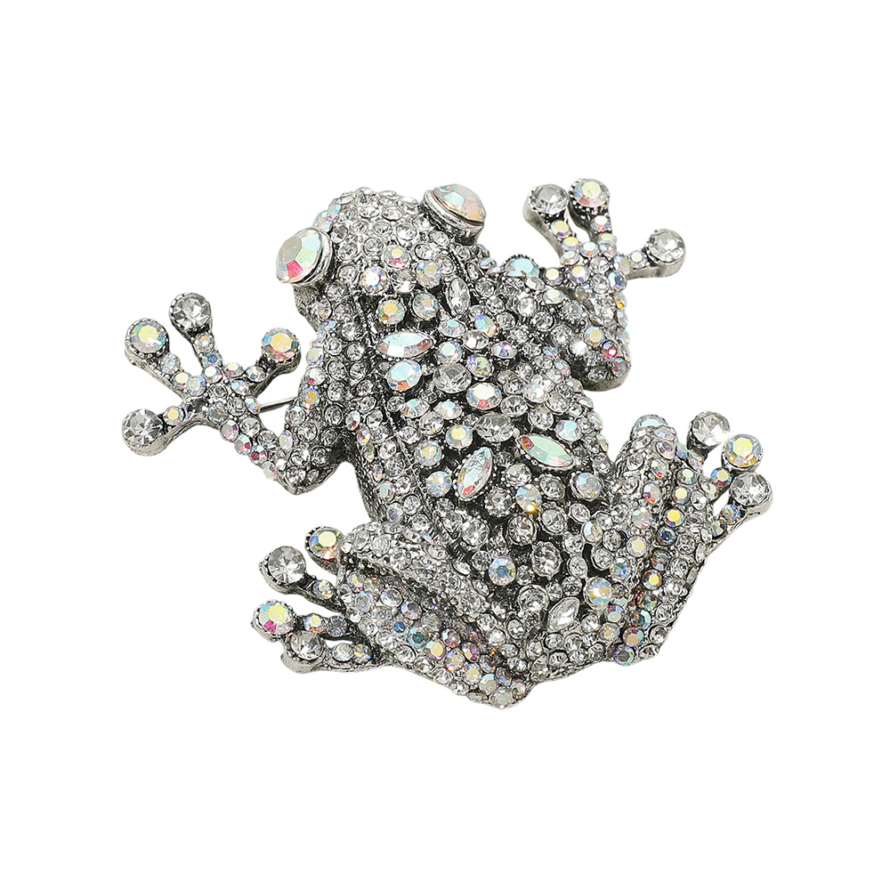 Details • Size : 2.75" X 2.5" • Pin Brooch • Add playful elegance to your style with this sparkling frog brooch, adorned with shimmering crystals for a dazzling finish. Perfect as a statement accessory or a thoughtful gift, this eye-catching pin brings charm, personality, and a touch of sparkle to any outfit. • Lead and Nickel Compliant