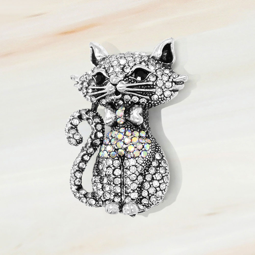 • Add a whimsical touch to any outfit with this charming crystal cat brooch. Featuring sparkling pavĂ© stones and intricate detailing, it’s perfect for pinning to jackets, scarves, or bags. A playful accessory that makes a unique gift or personal statement piece for animal lovers.