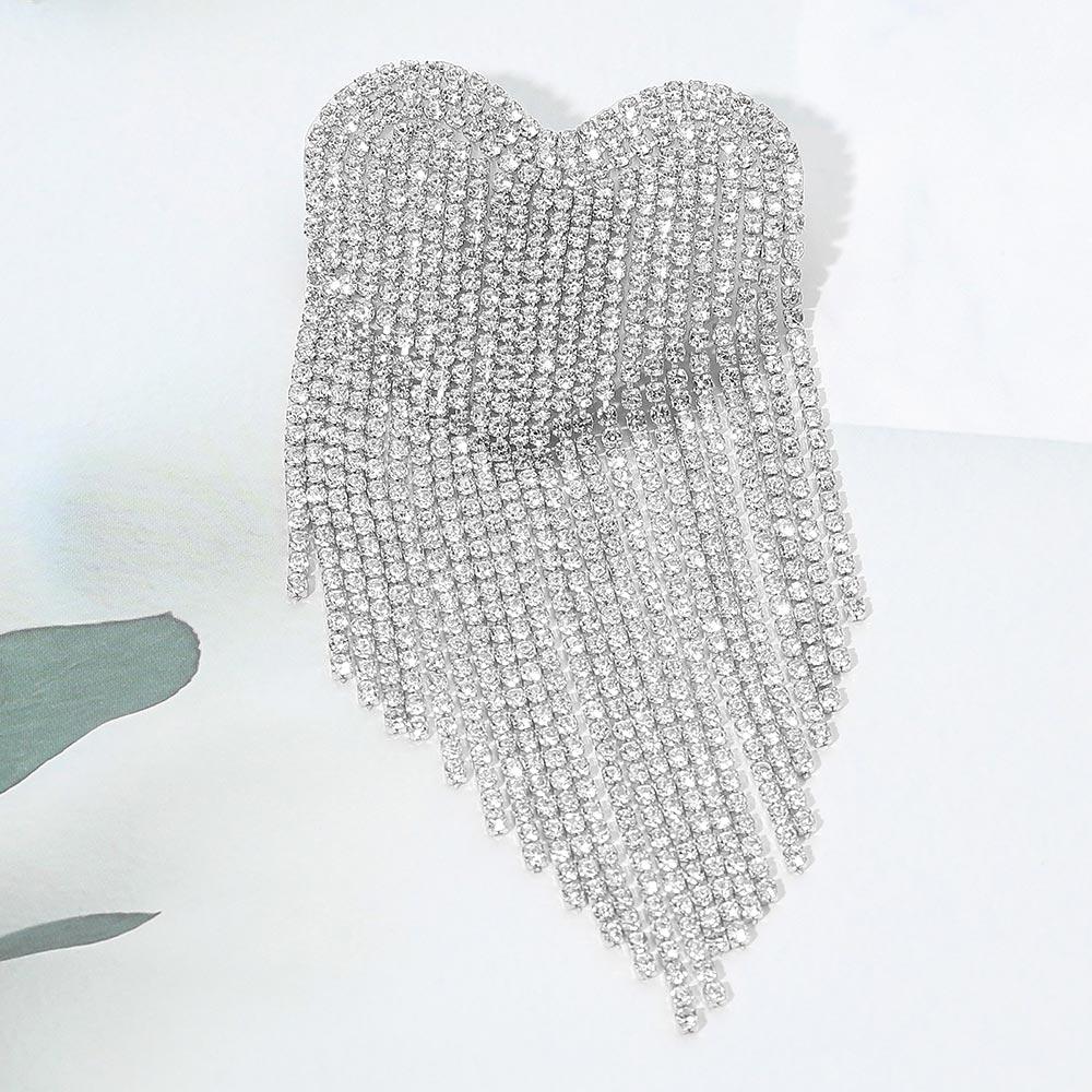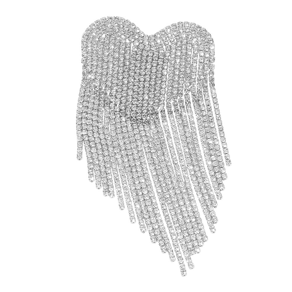 • Make a dazzling statement with this heart fringe rhinestone brooch. Its cascading strands shimmer with every movement, blending romance and glamour in a bold, eye-catching design. Perfect for accessorizing jackets, dresses, or scarves with a touch of brilliance.