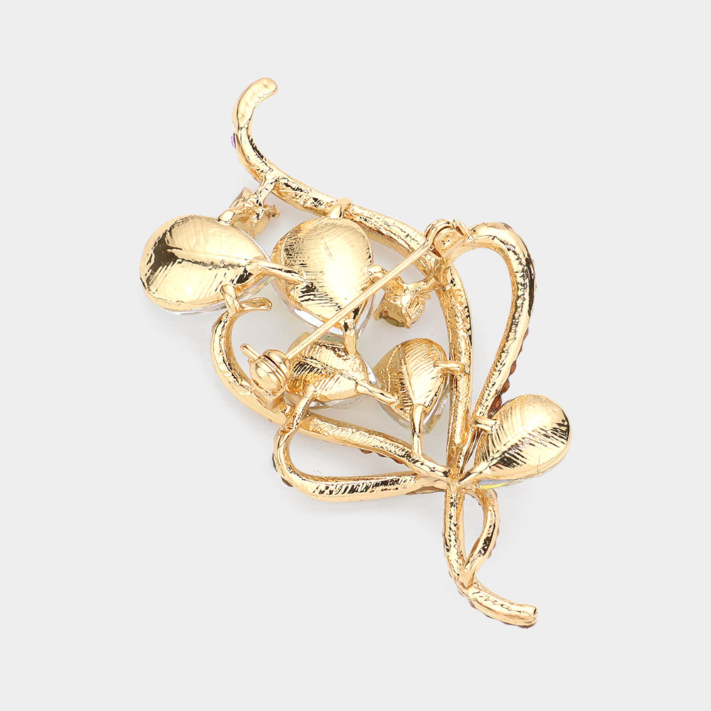 Filigree Flower Leaf Detailed Brass Metal Marquise Dangle Earrings