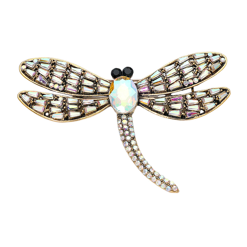 Details • Size : 3" X 2.2" • Pin Brooch • Elegant dragonfly brooch featuring shimmering crystal accents and intricate wing details. This statement accessory adds a touch of sophistication and charm to jackets, scarves, or bags, making it a perfect piece for both everyday wear and special occasions. • Lead and Nickel Compliant
