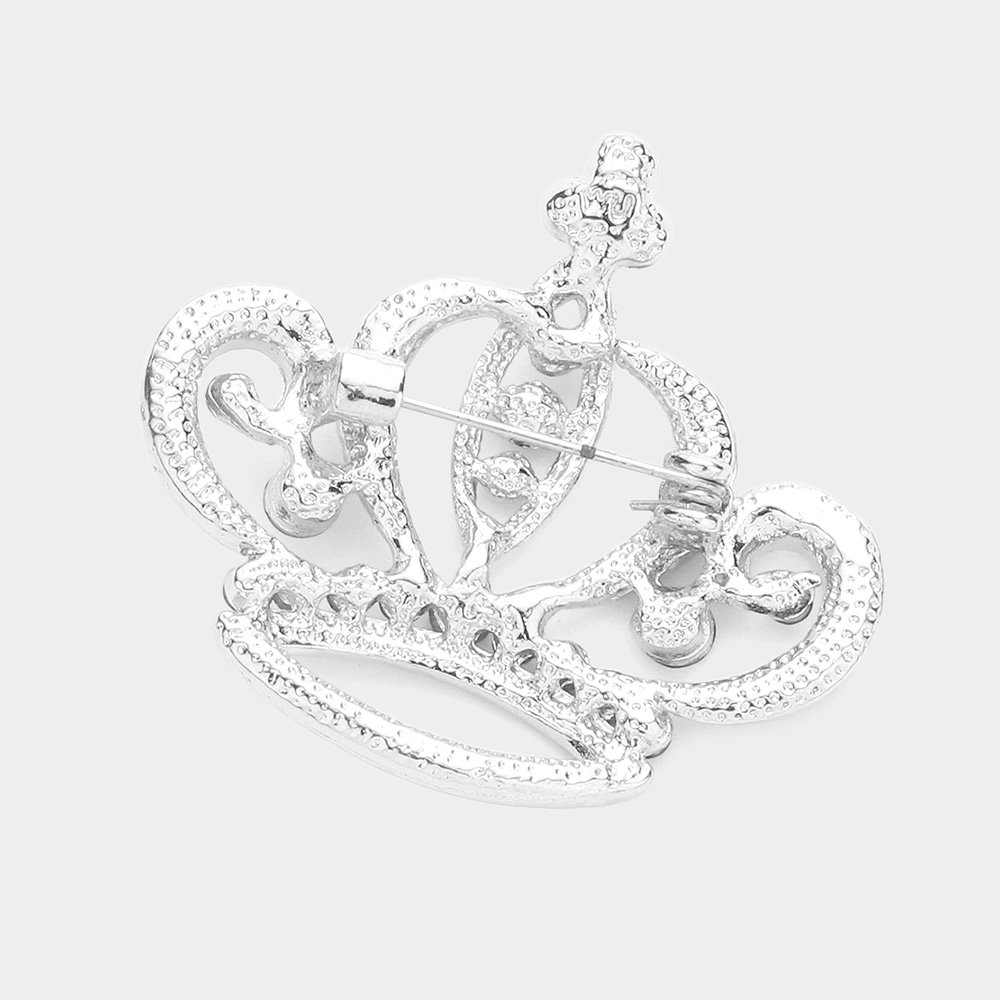 Stone Embellished Crown Pin Brooch