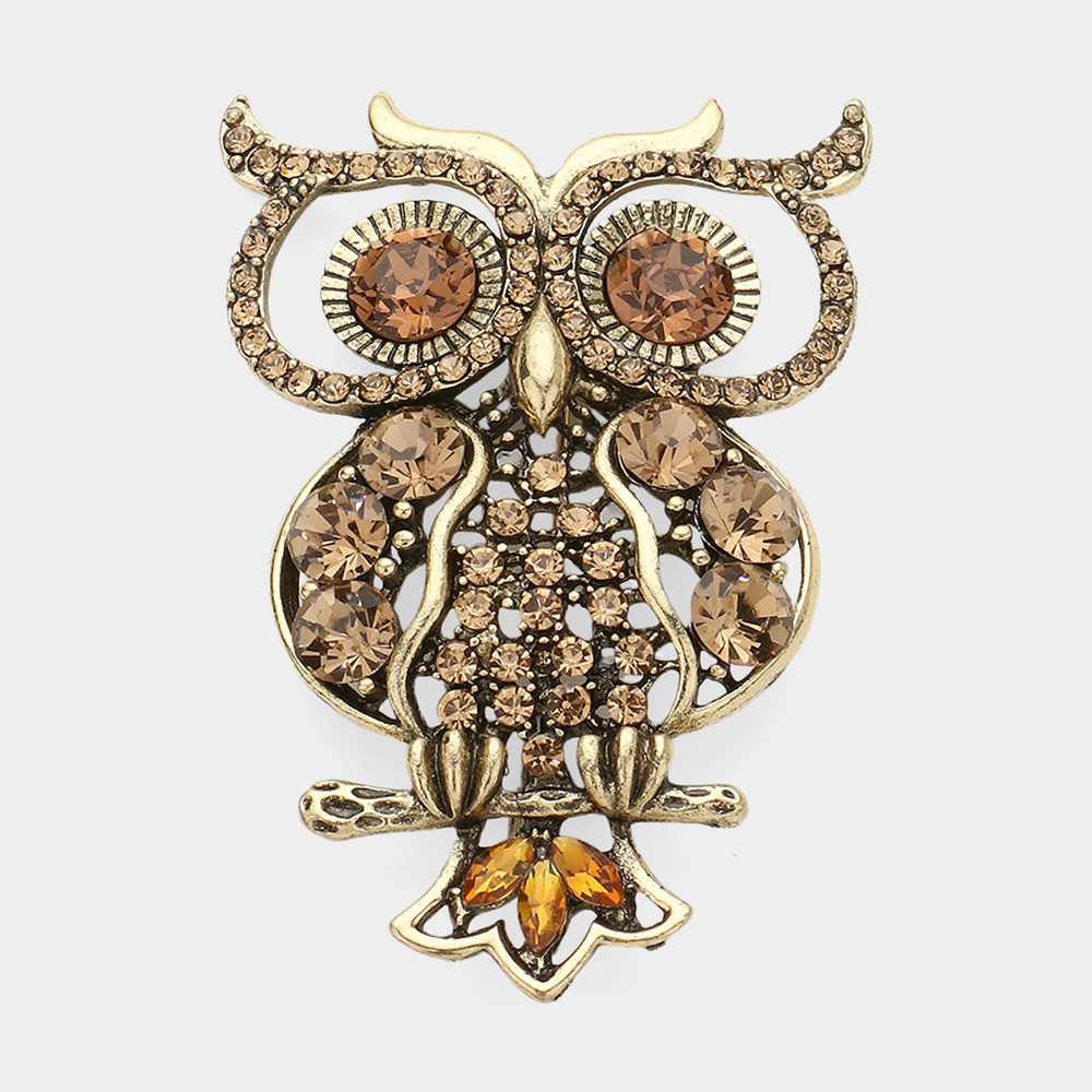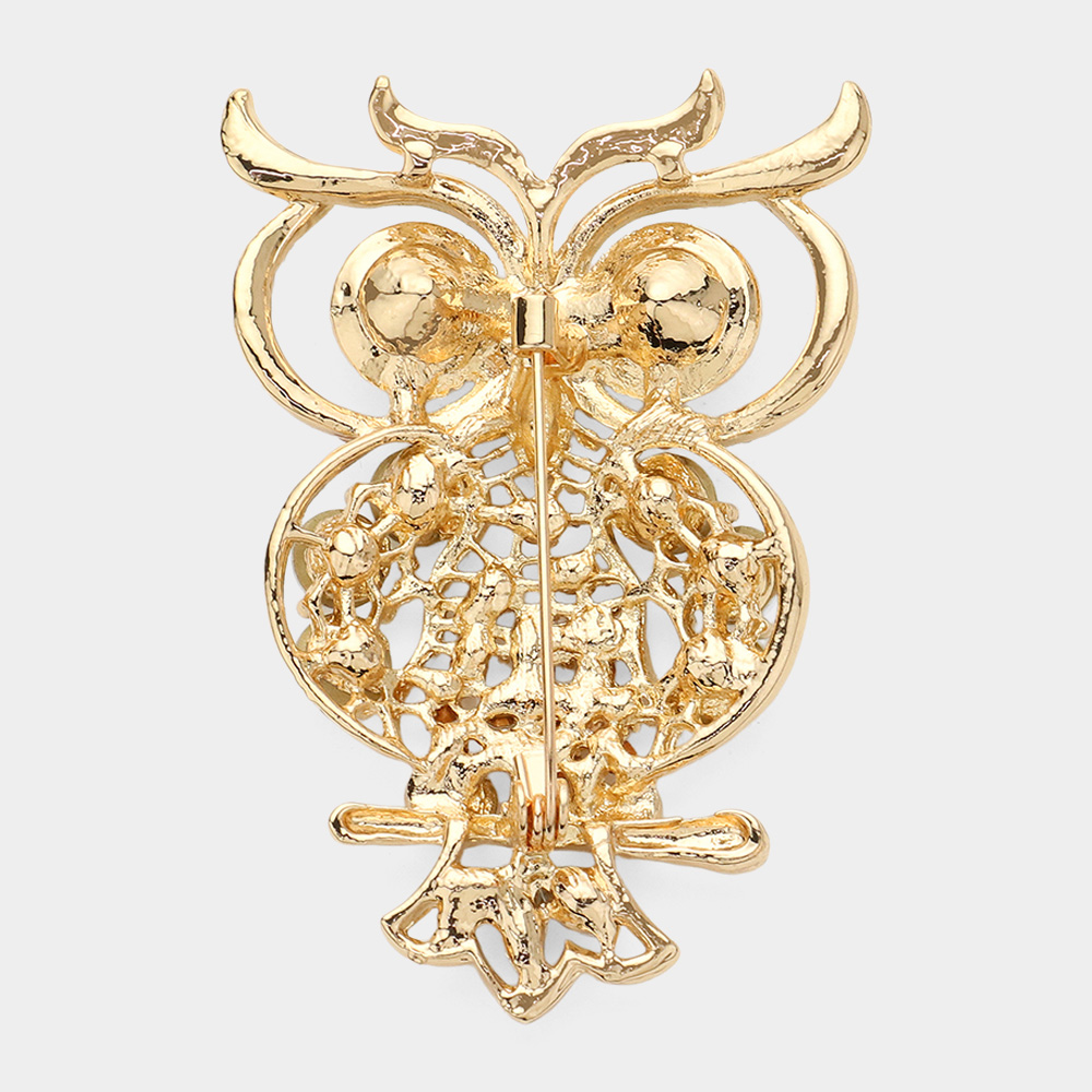 Stone Embellished Owl Pin Brooch