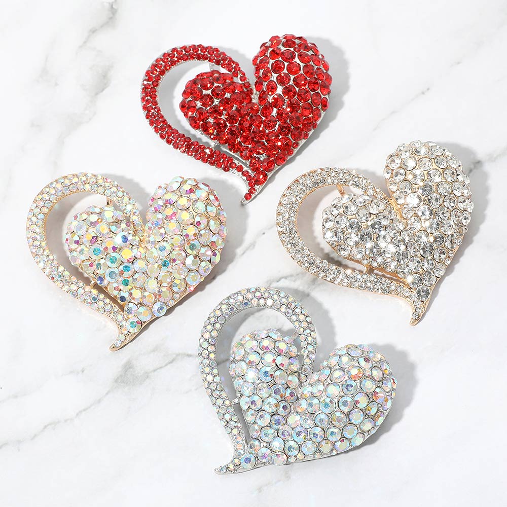 Stone Paved Heart Pin Brooch