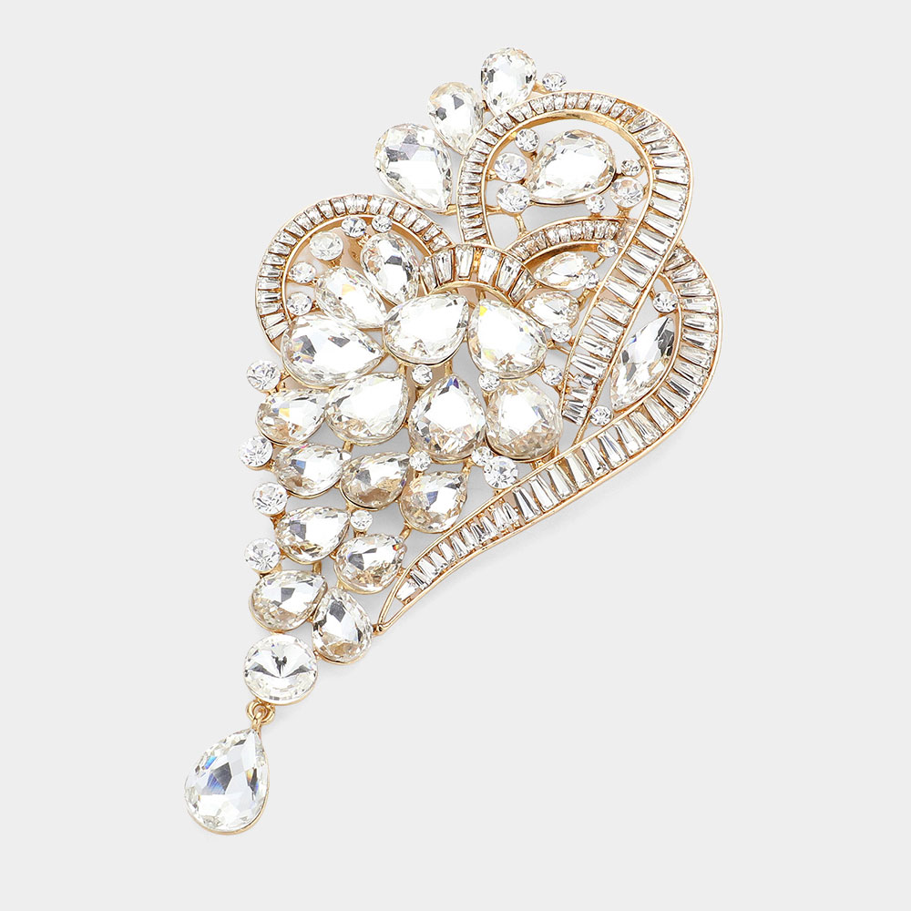 Teardrop Glass Stone Cluster Embellished Abstract Pin Brooch Teardrop Glass Stone Cluster Embellished Abstract Pin Brooch