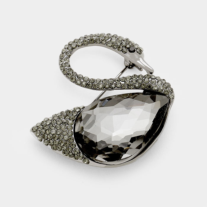 Teardrop Stone Accented Swan Brooch Teardrop Stone Accented Swan Brooch