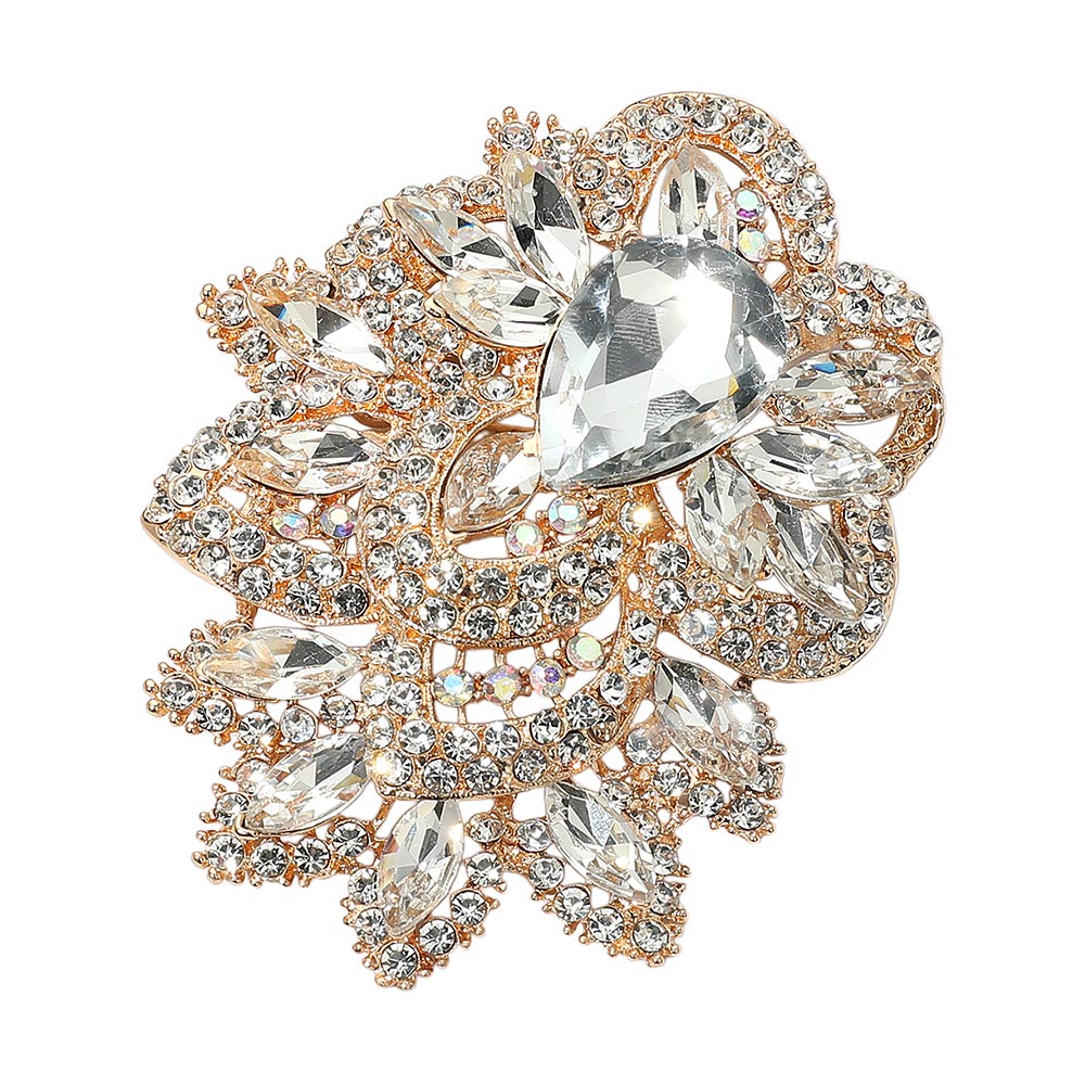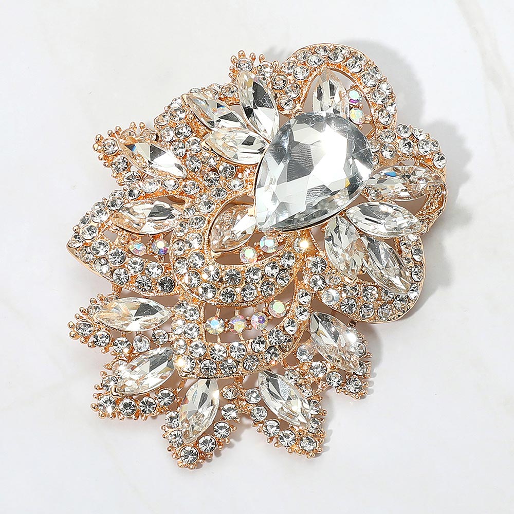 Bold Rhinestone Flower Statement Brooch Pendant