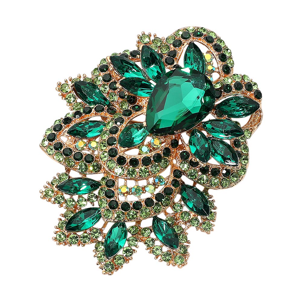 • Glamorous flower-shaped brooch/pendant with radiant crystals and vibrant gemstone accents, designed to make a bold statement. Perfect for elevating formal outfits, evening gowns, or party attire, this sparkling accessory adds elegance and brilliance, making it an ideal gift or keepsake.