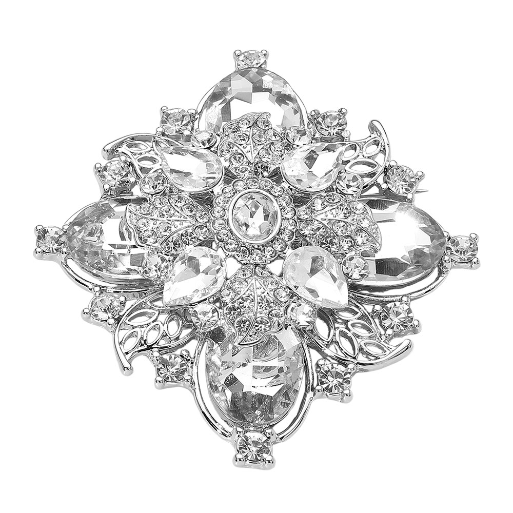 Details • Size : 3.25" X 3.5" • Pin Brooch • Elevate any outfit with this vintage floral crystal brooch designed with layered faceted accents and ornate detailing. Perfect for pinning on jackets, scarves, bags, or dresses, it adds dramatic sparkle and refined style, making it a standout accessory or thoughtful gift for special occasions and everyday elegance. • Lead and Nickel Compliant